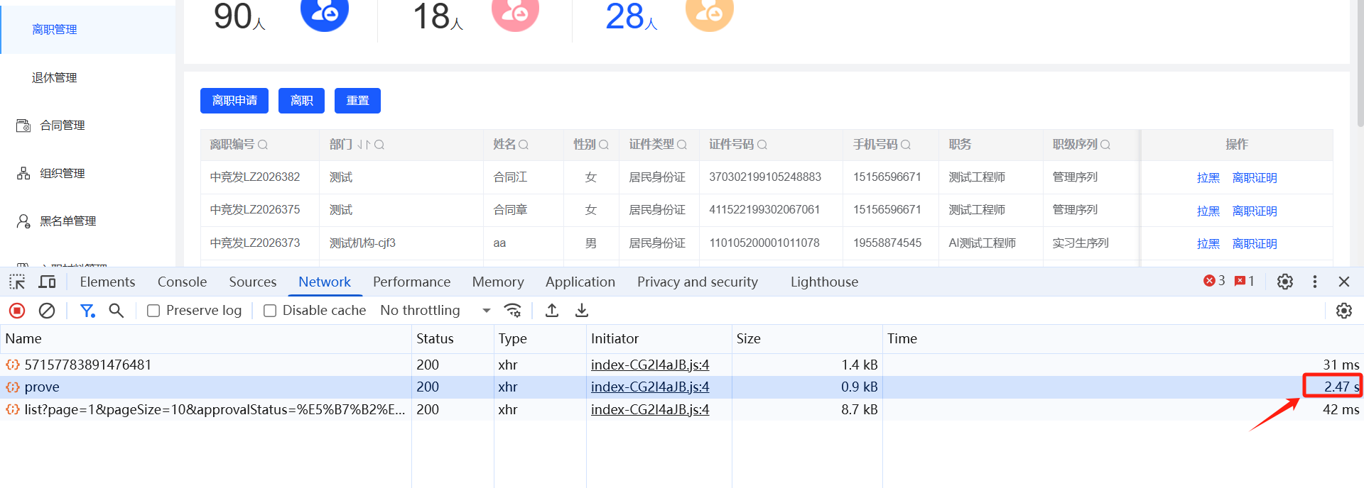 人事管理-离职管理:发送离职证明时接口响应时间较长,建议优化