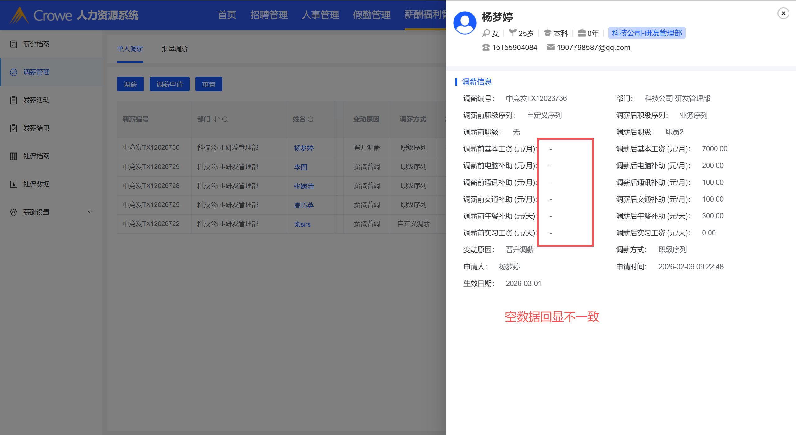 职级没有配置的字段值,在调薪详情和申请表单中回显的格式不一致