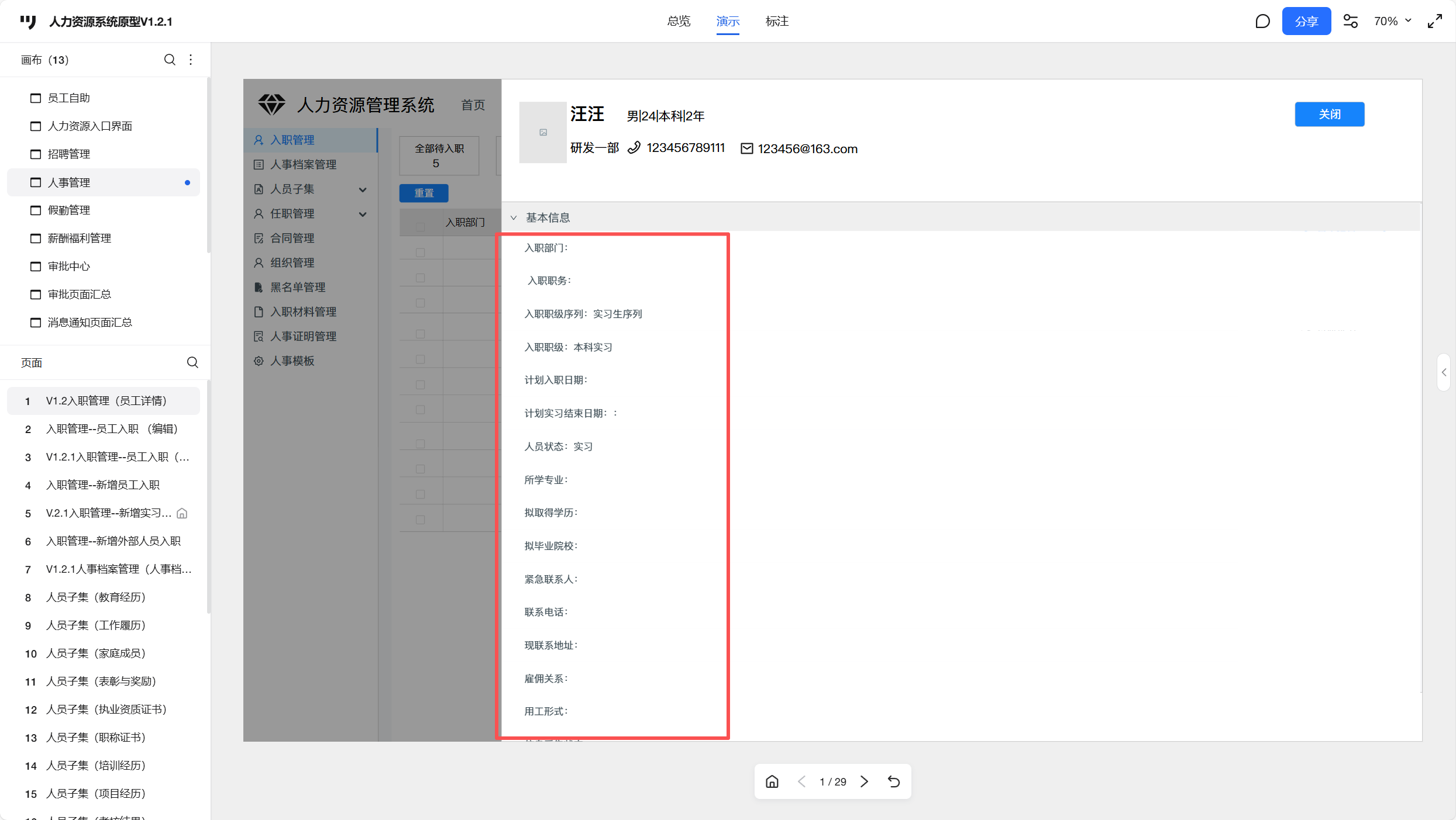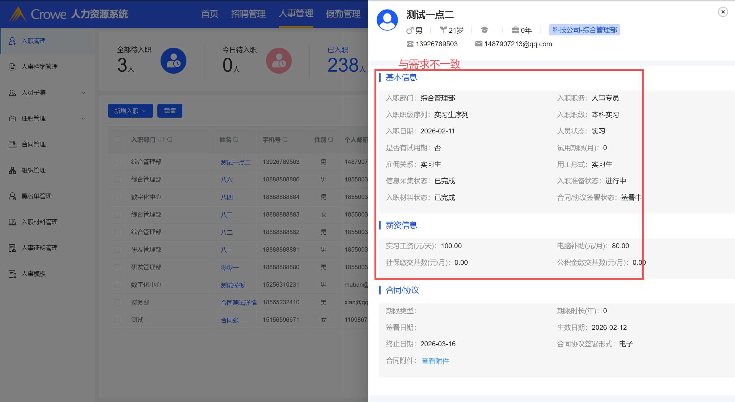 已入职详情页面,实习生的字段内容和需求表、原型不一致