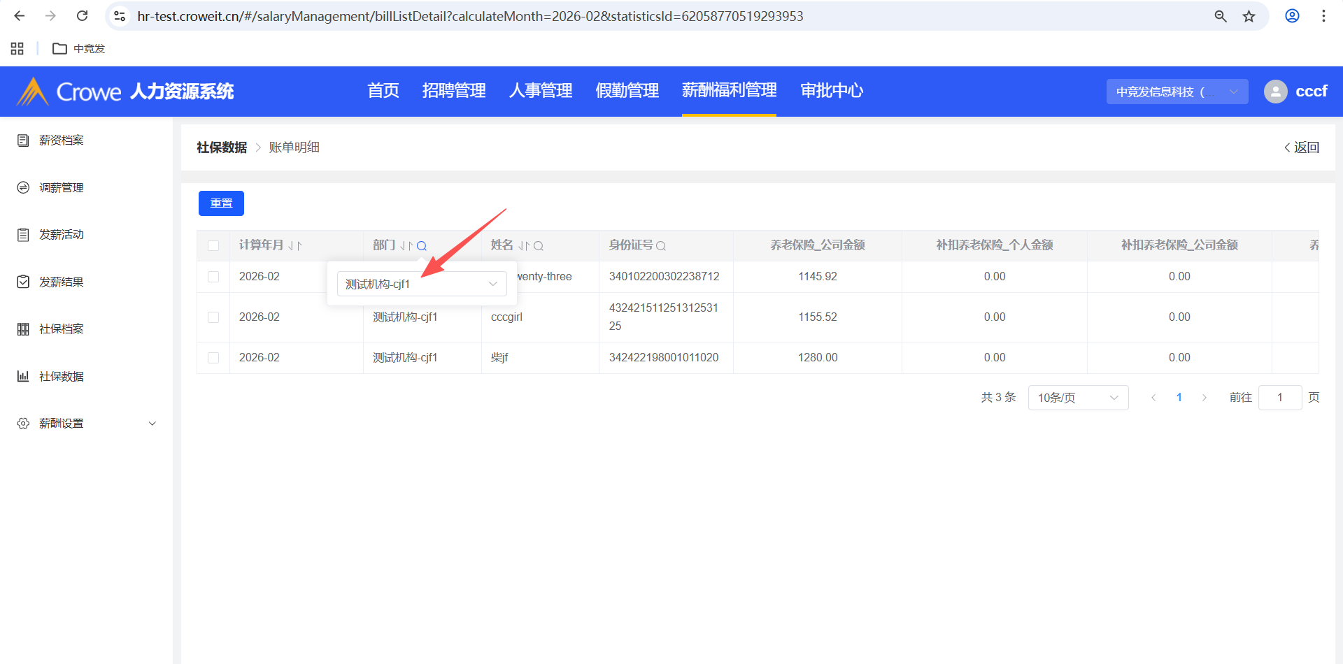 已关闭人力资源系统-薪酬福利管理-社保数据,月账单详情,无法重置部门