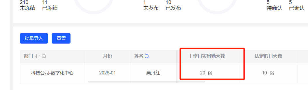 4号没有考勤方案,所以实出勤显示20天;出差22天是根据日报统计的,日报3号显示应出勤,整个月份就显示了22天