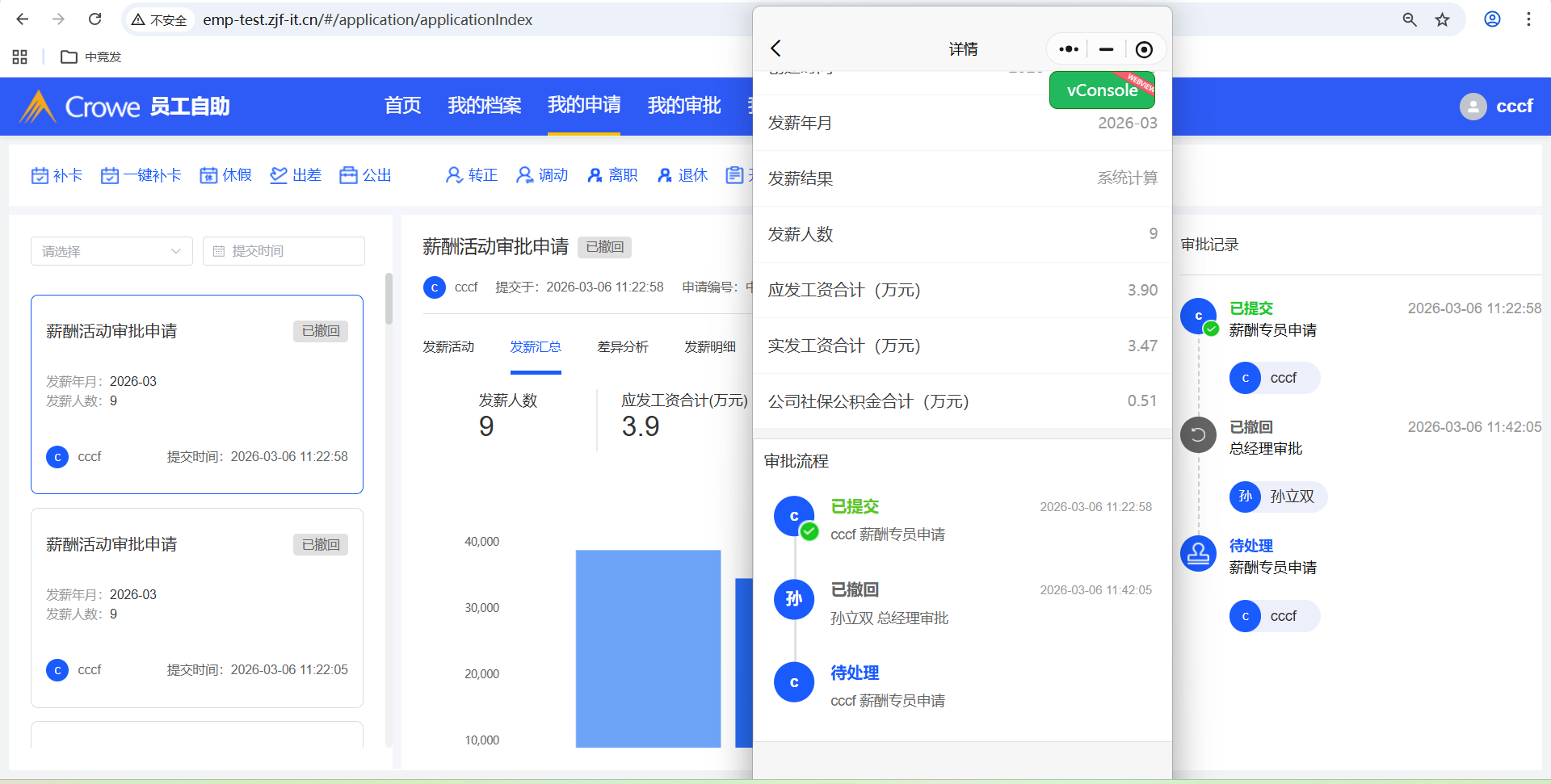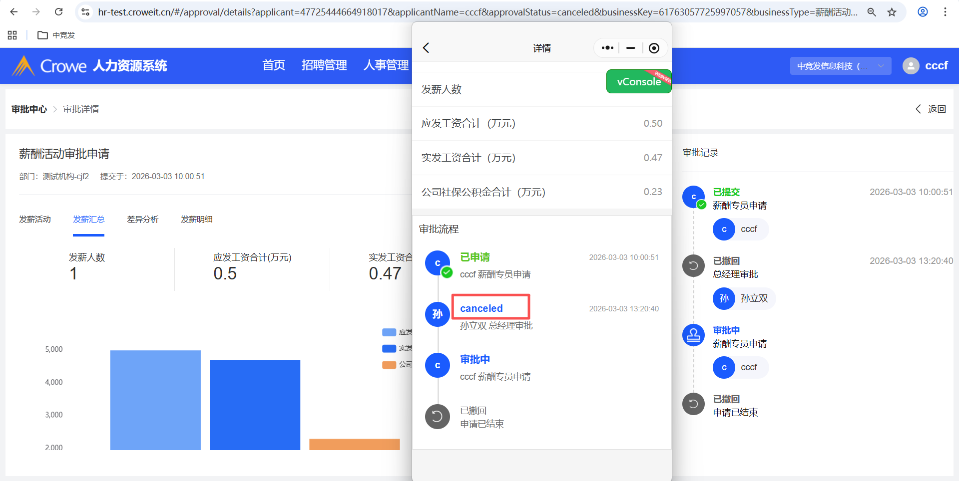 小程序-我的申请-薪酬福利活动-撤回,审批流程节点不应显示canceled