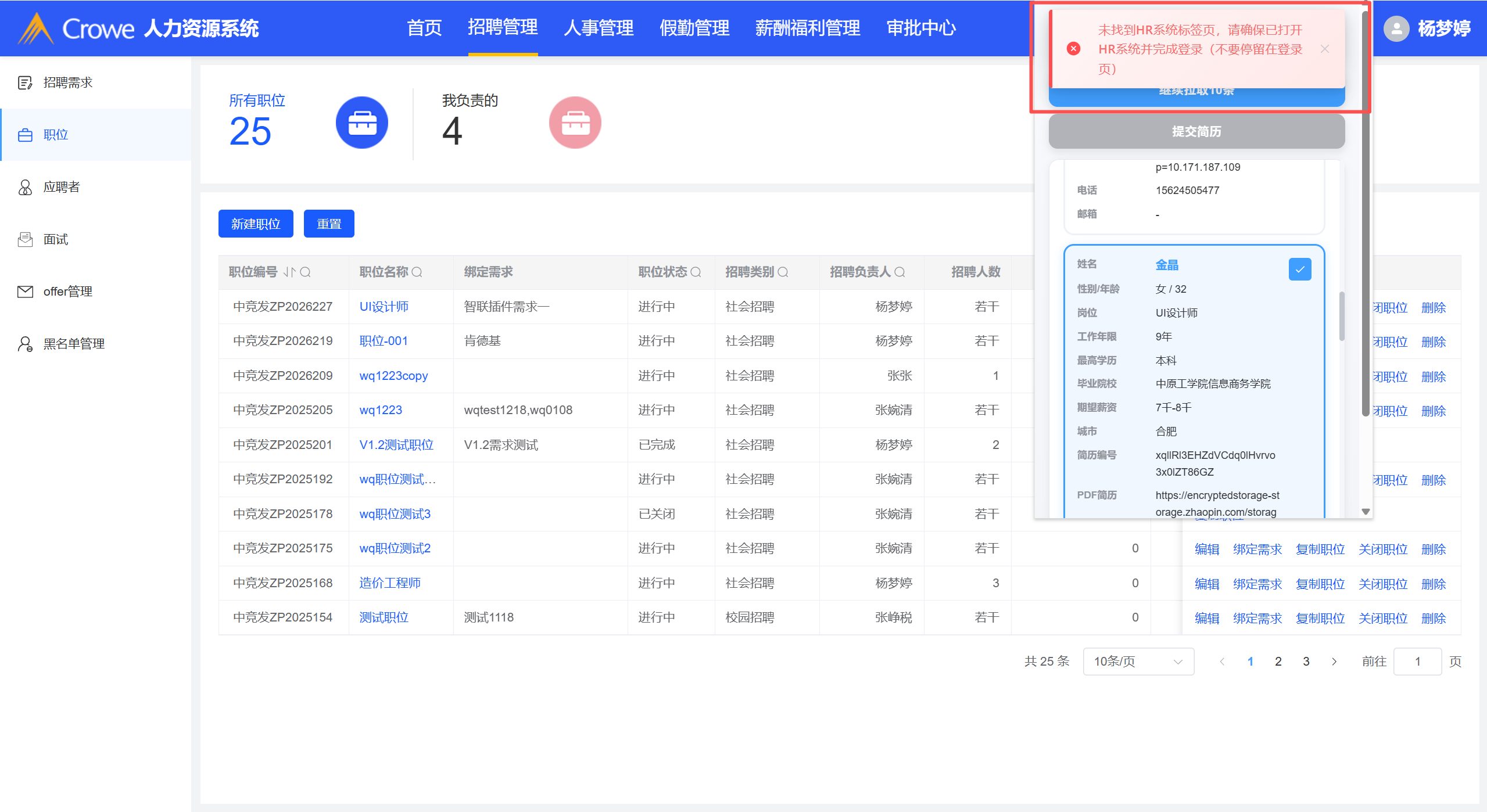 智联招聘插件获取简历失败,识别不到人力系统登录状态