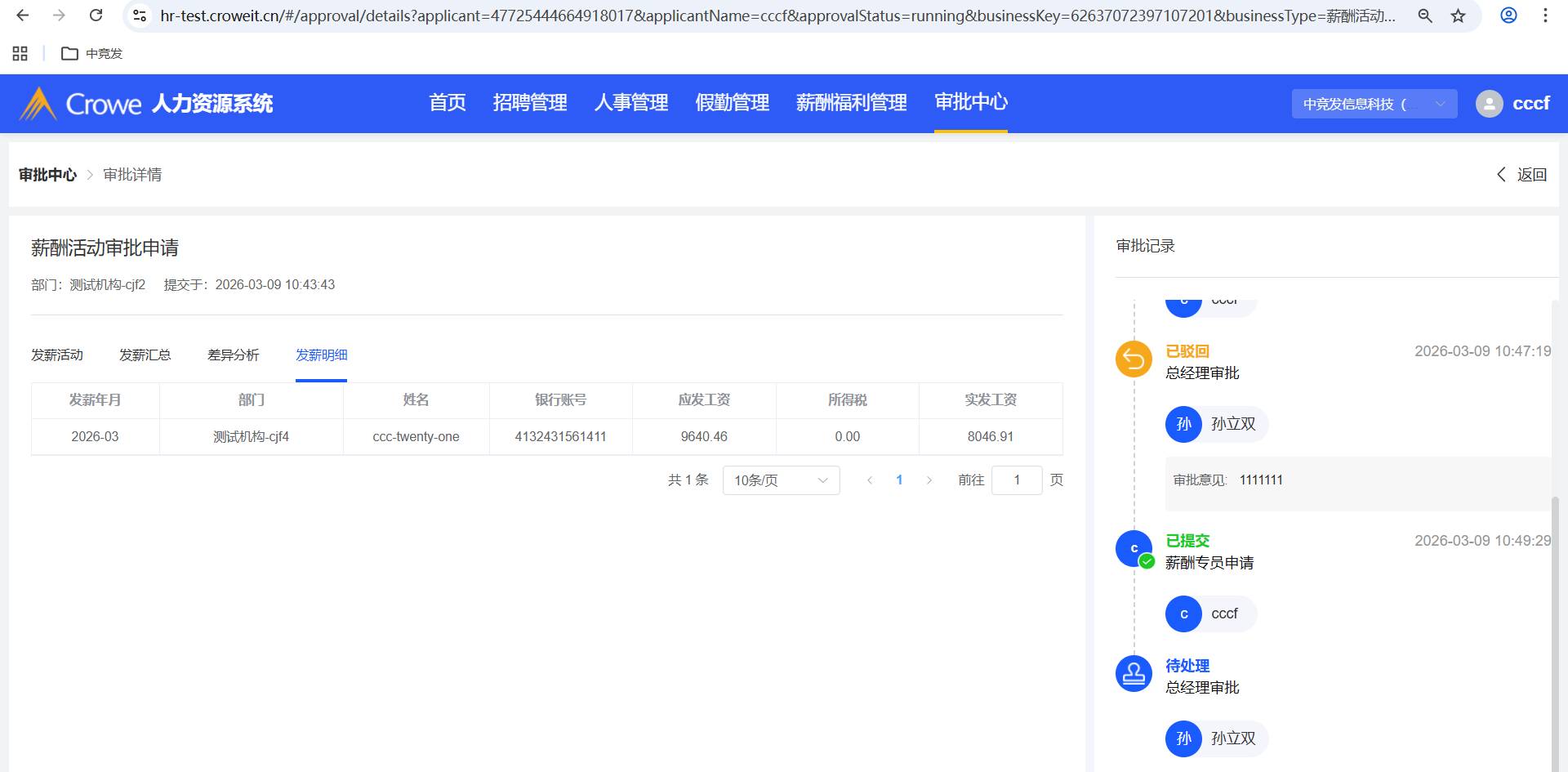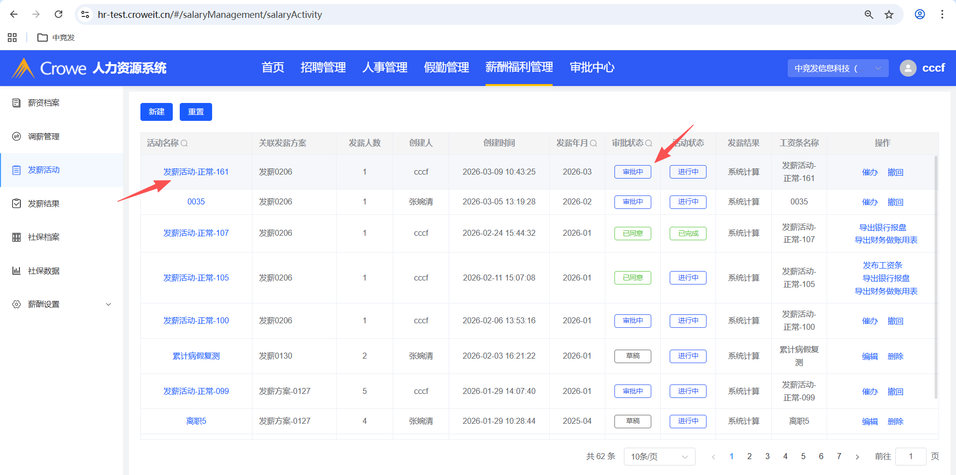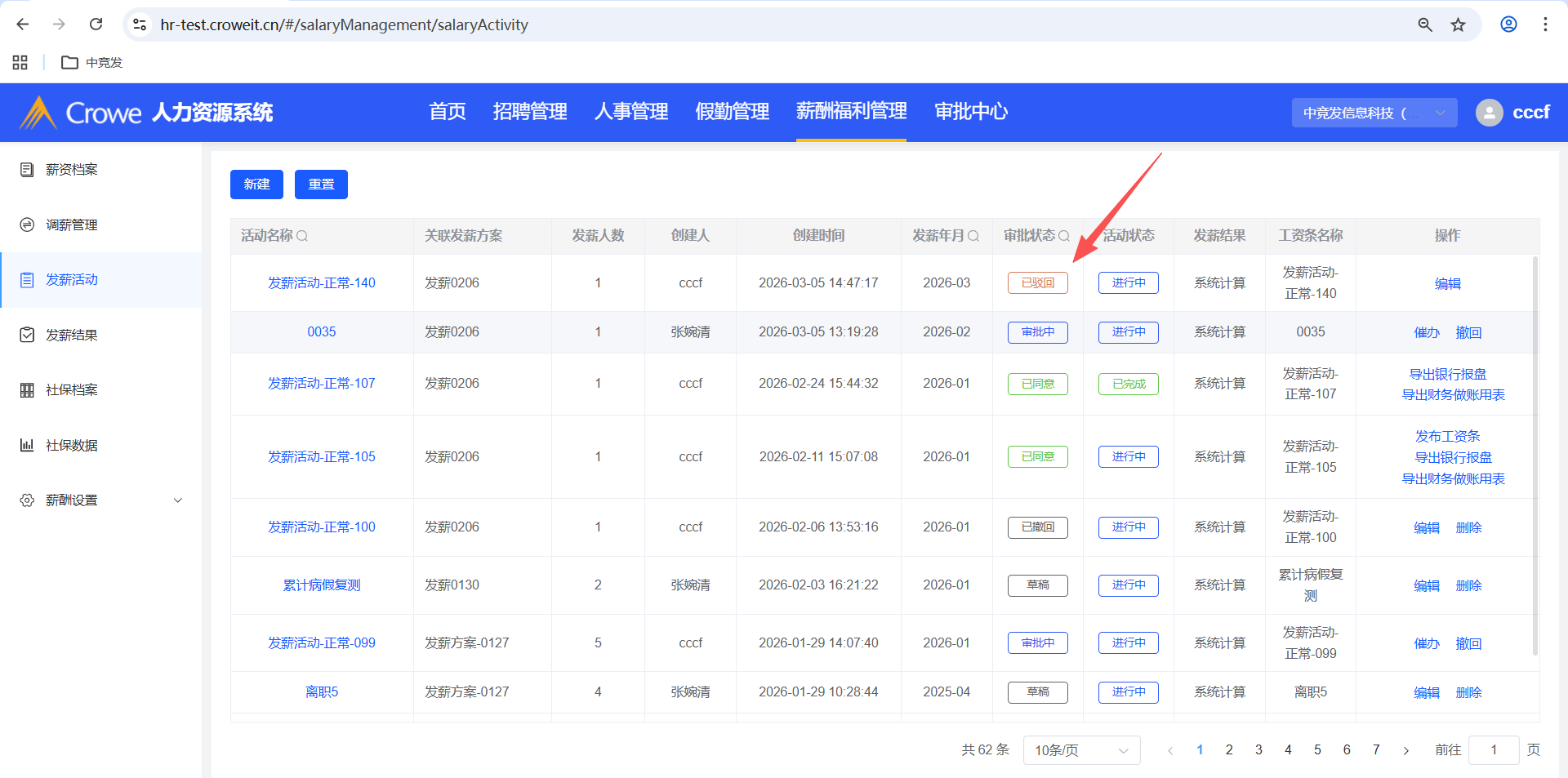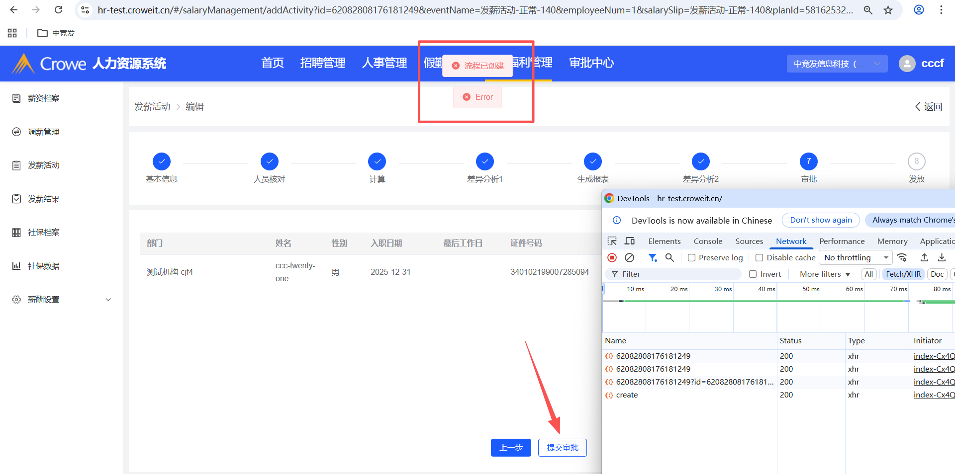 已关闭人力资源系统-薪酬福利管理-发薪活动,已驳回的重新提交审批,有报错