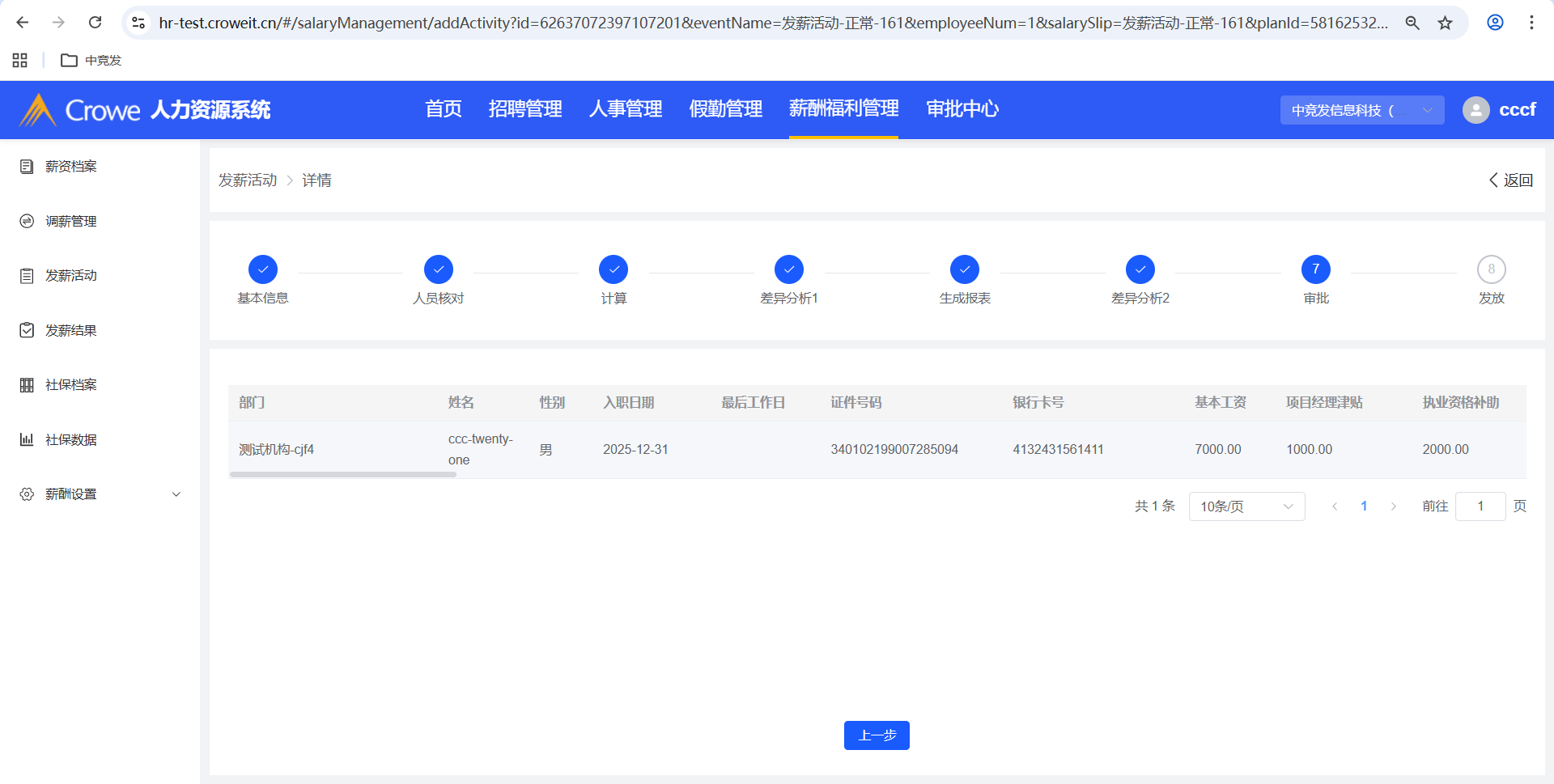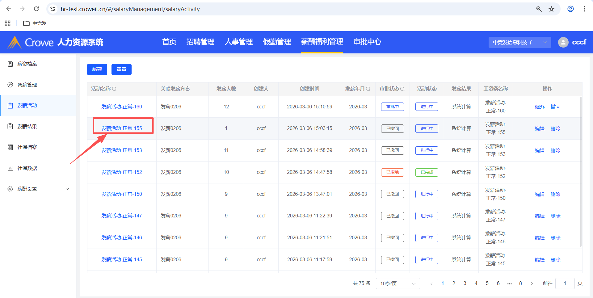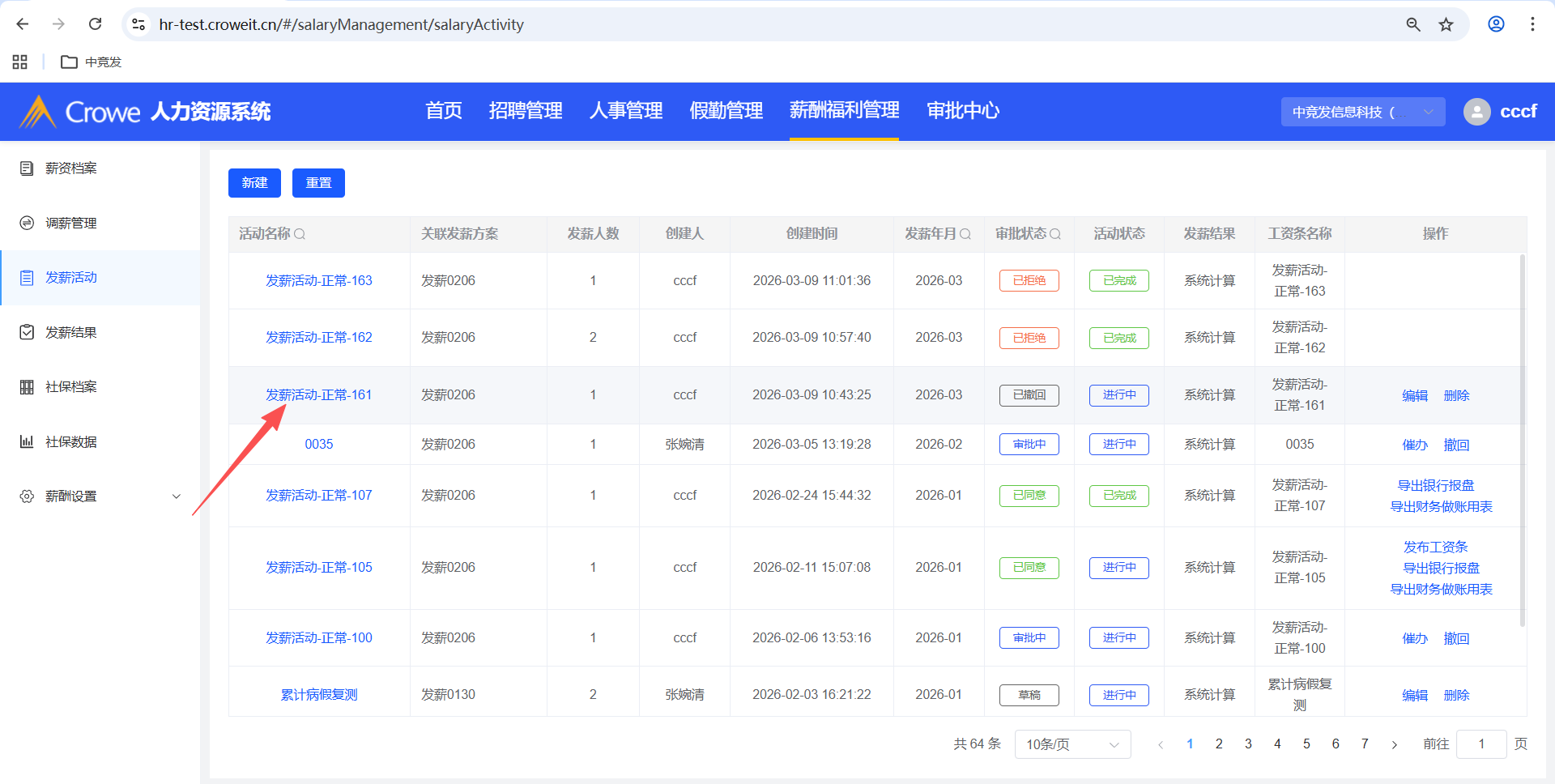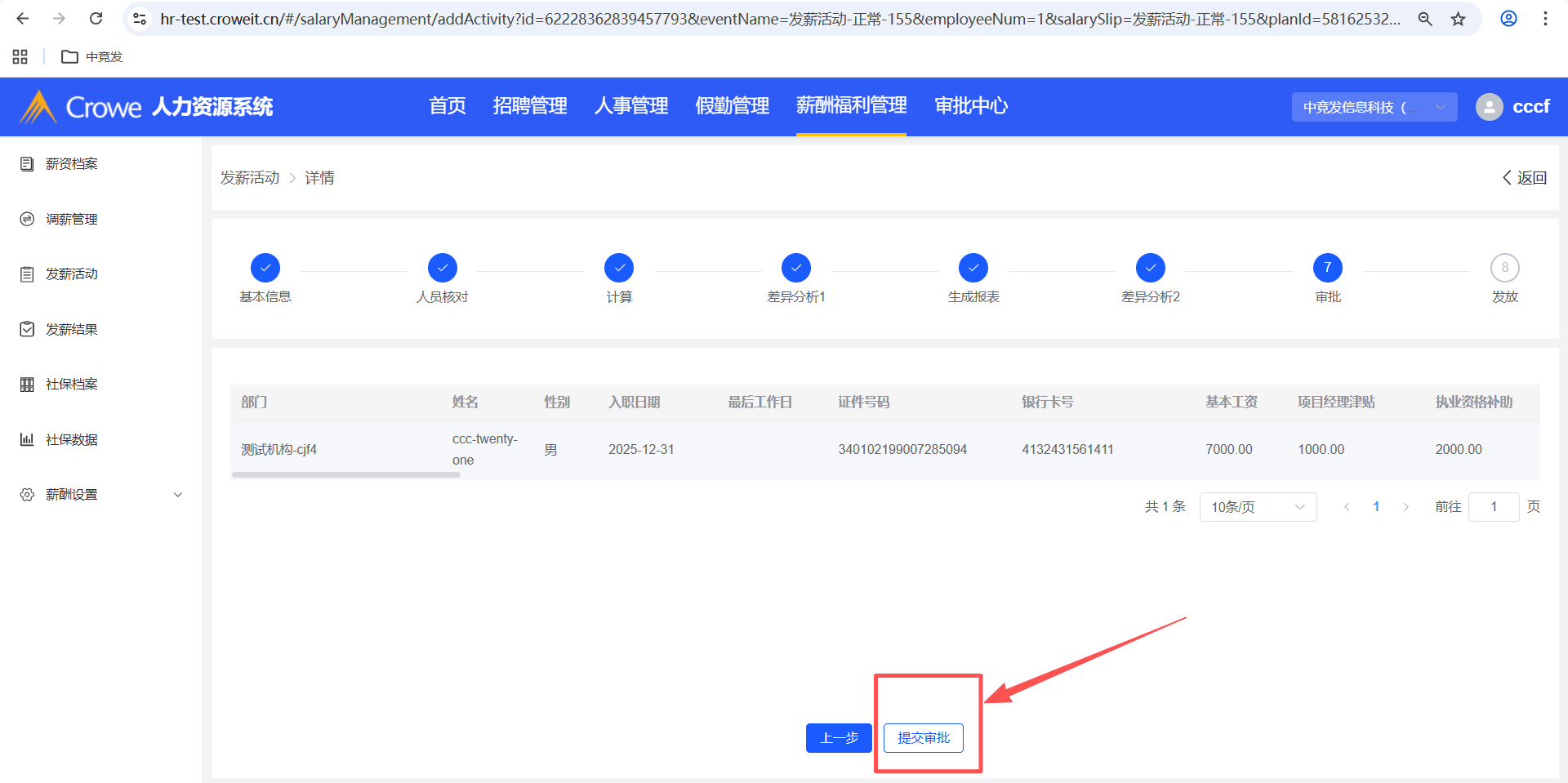 已关闭人力资源系统-薪酬福利管理-发薪活动,进入详情,详情里不用显示 提交审批按钮