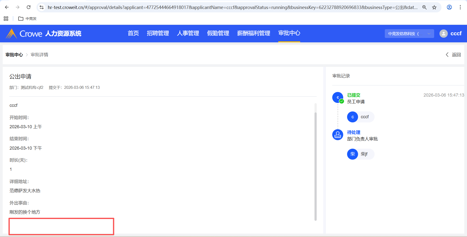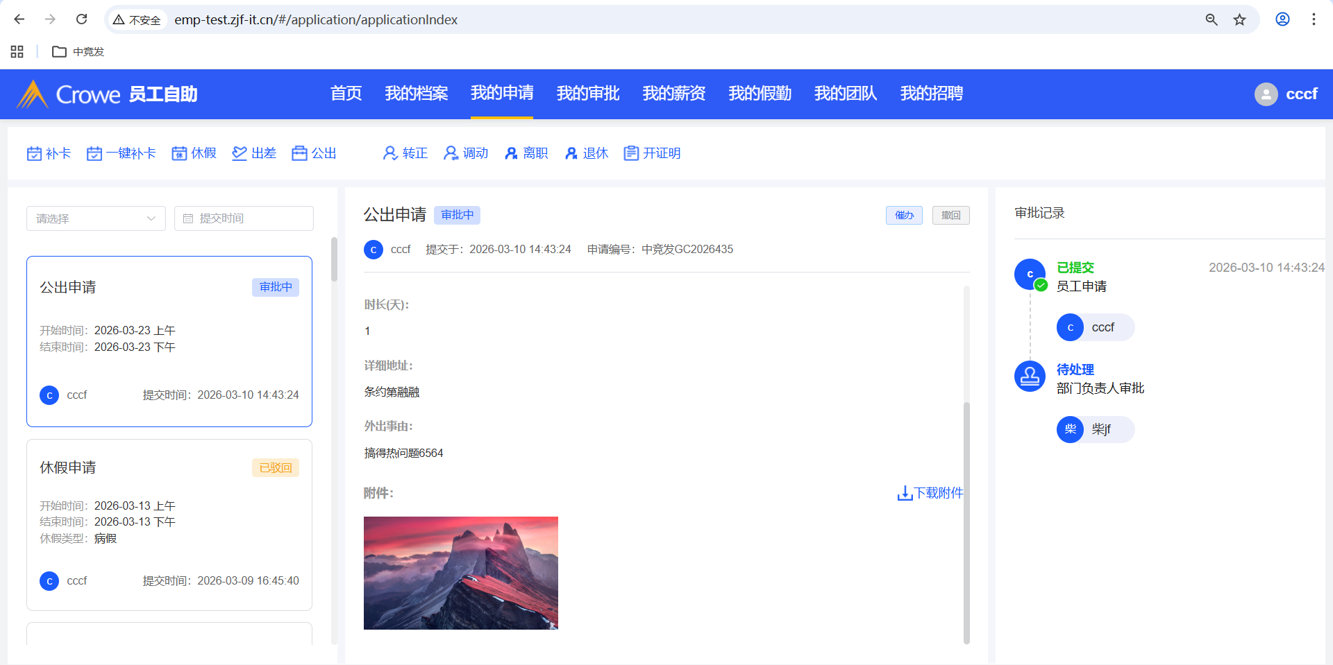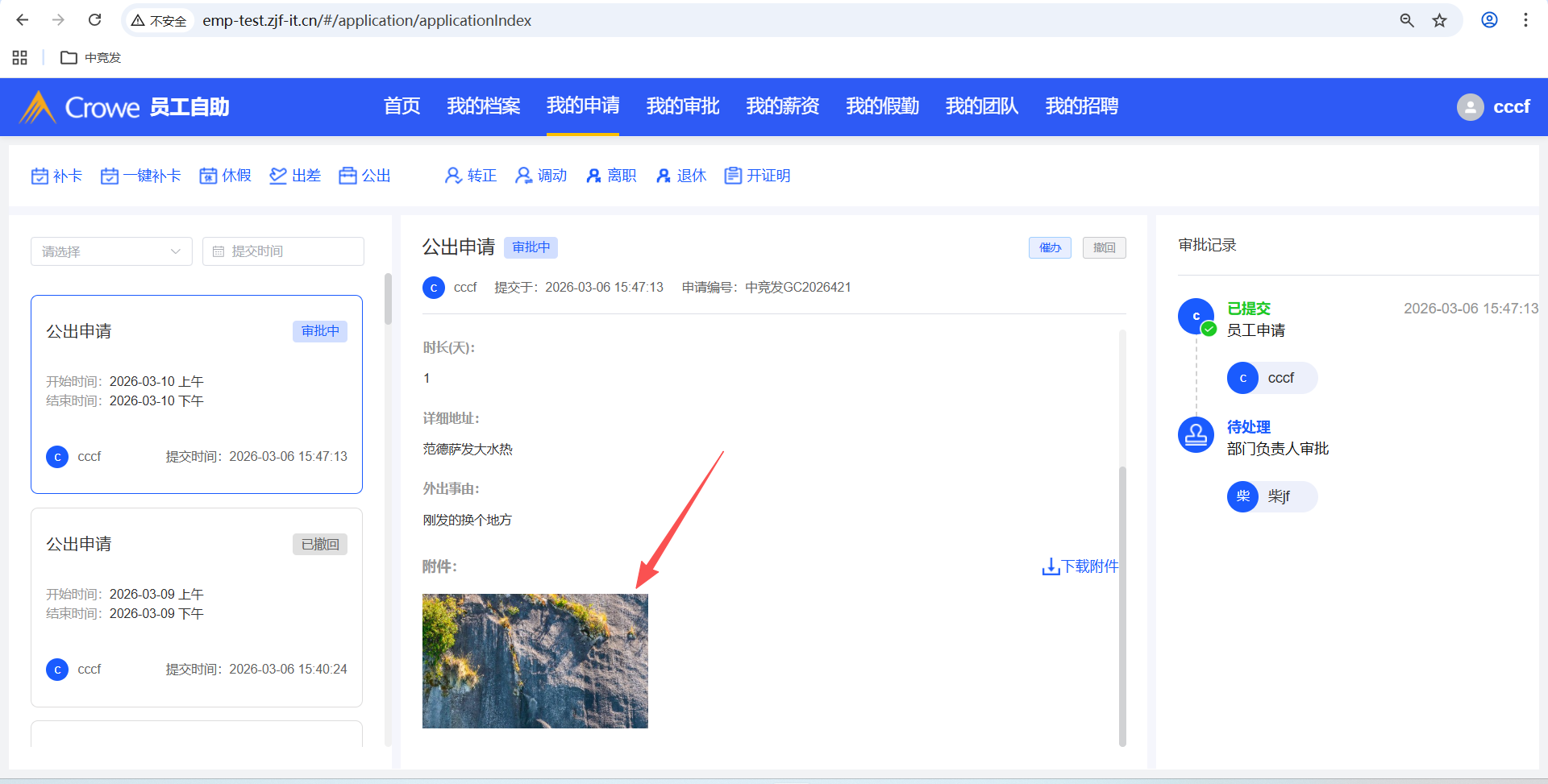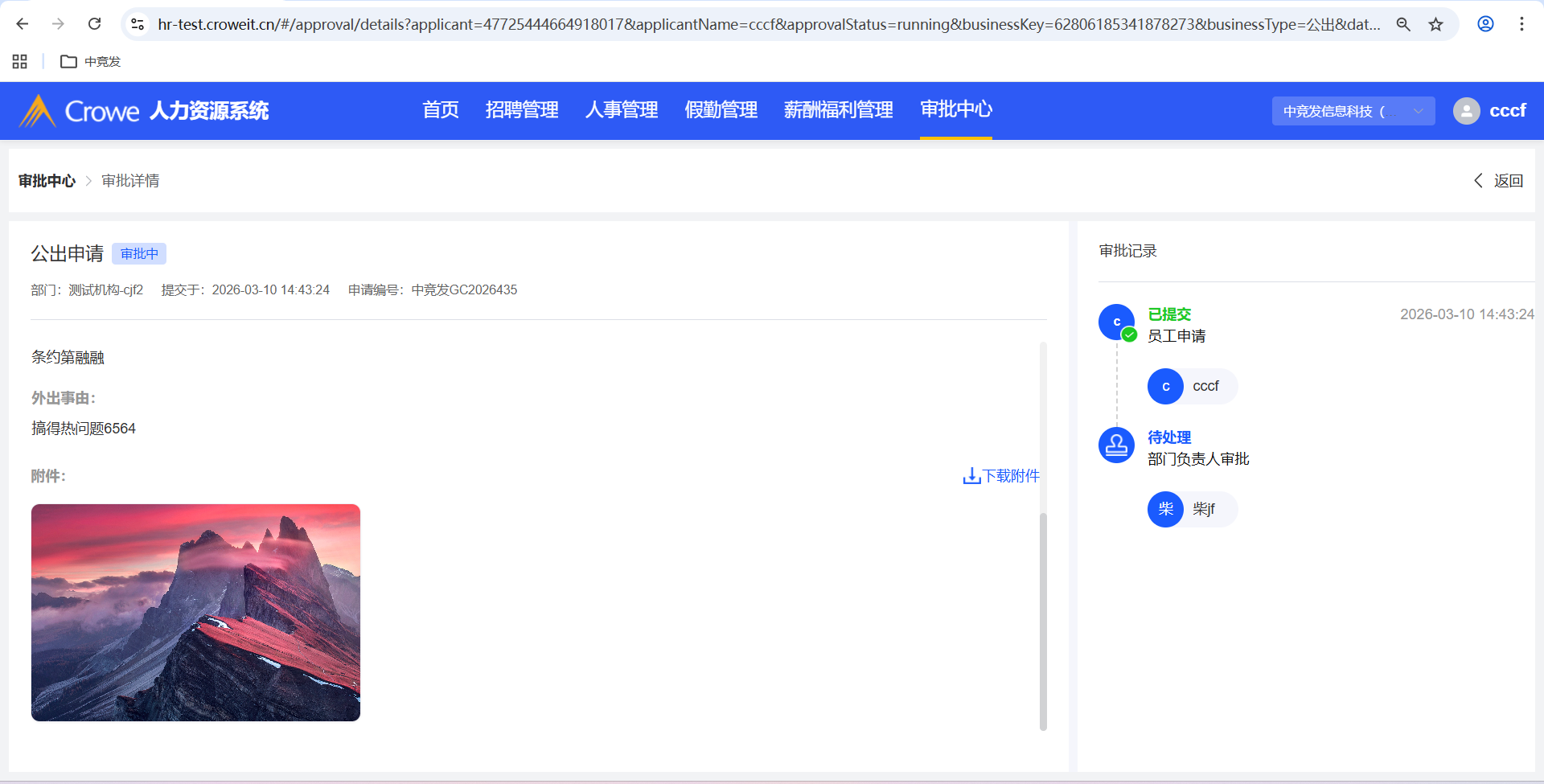 已关闭人力资源系统-审批中心,公出申请详情未显示附件
