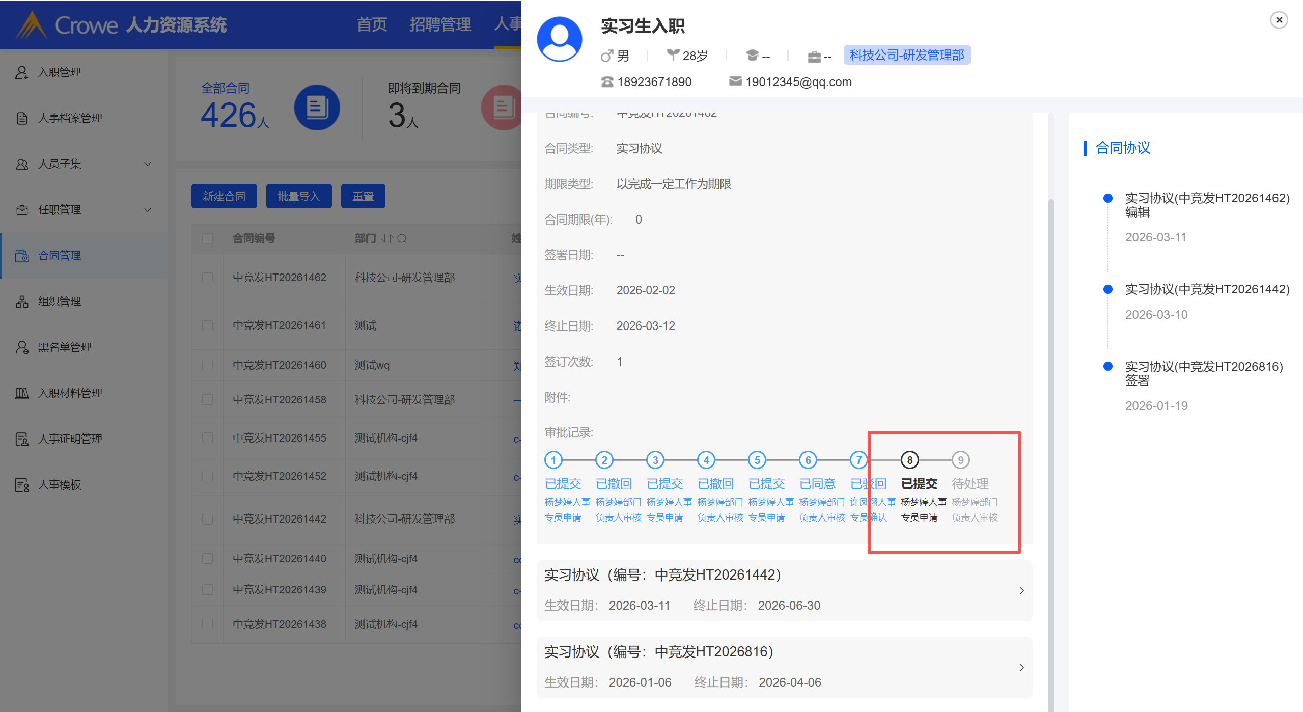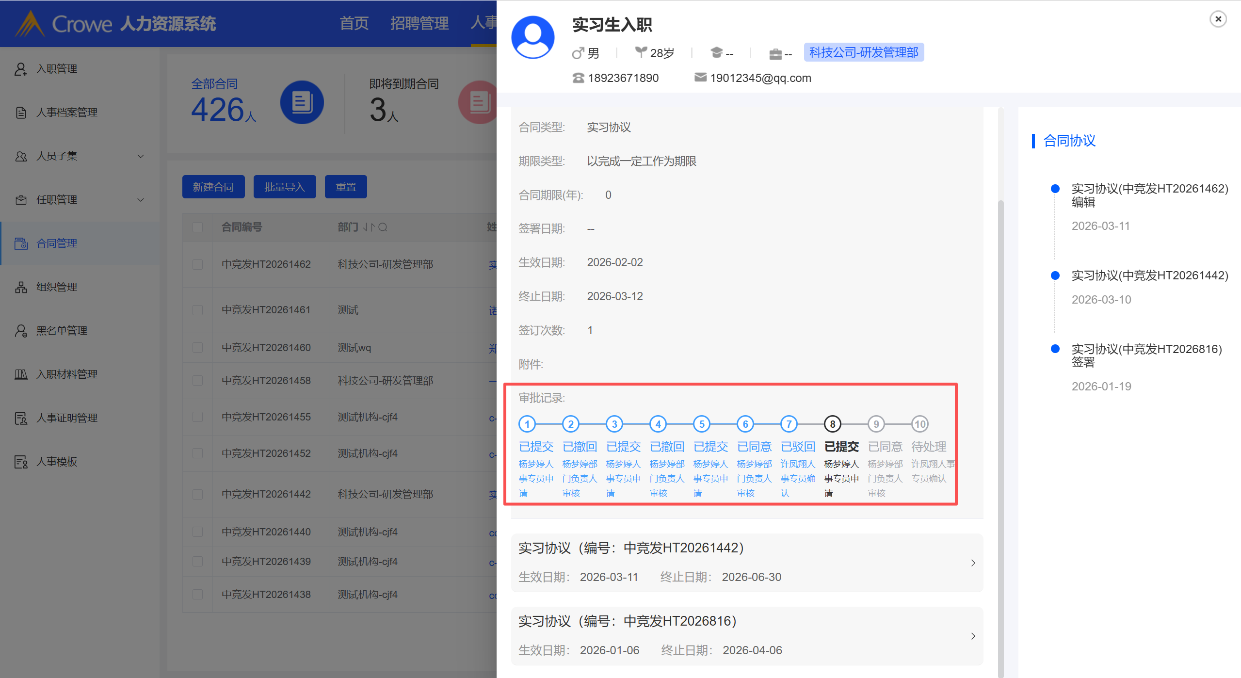 合同管理:合同变更申请 点击查看合同变更详情,多流程节点的情况下,审批记录格式前后不一致