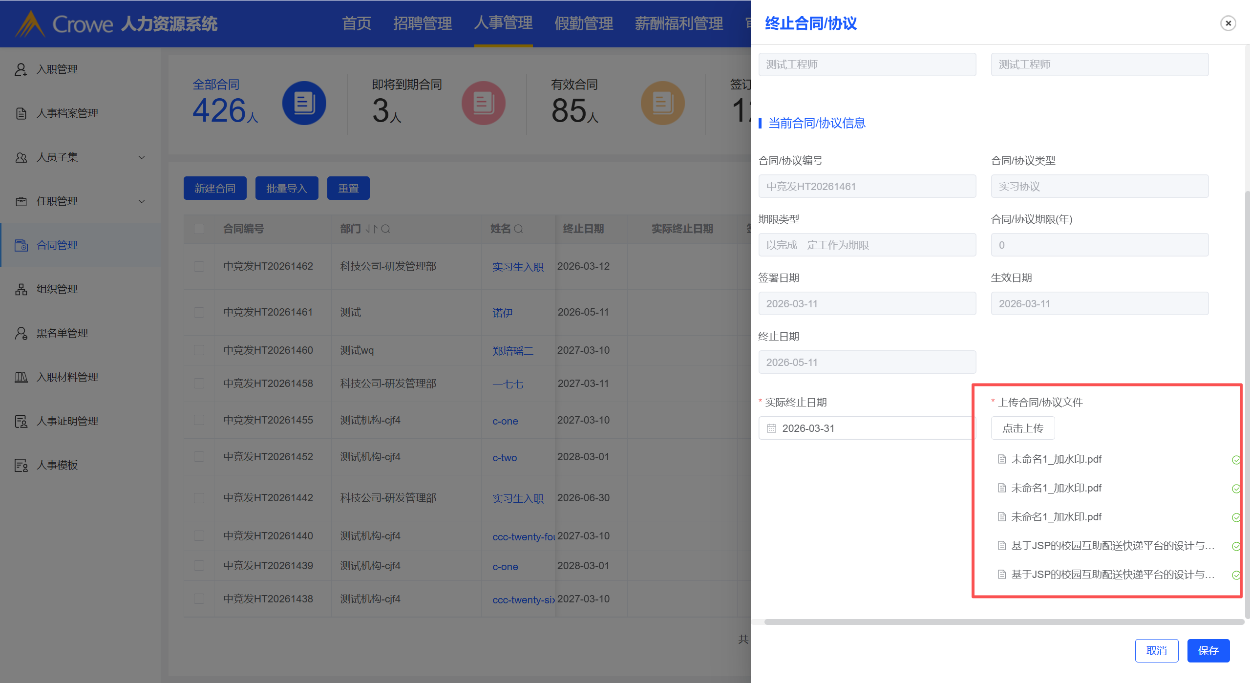 合同管理:终止合同时,上传合同附件未做次数、文件大小限制
