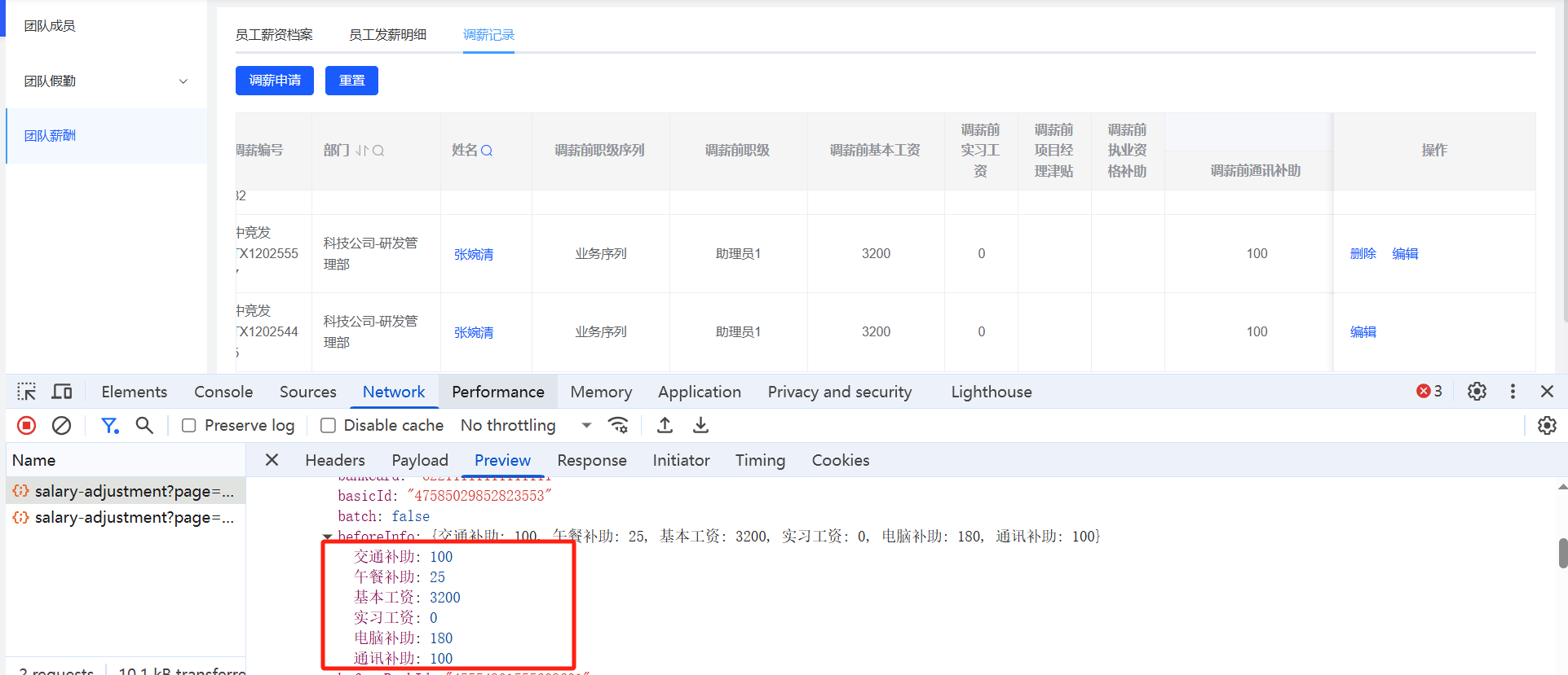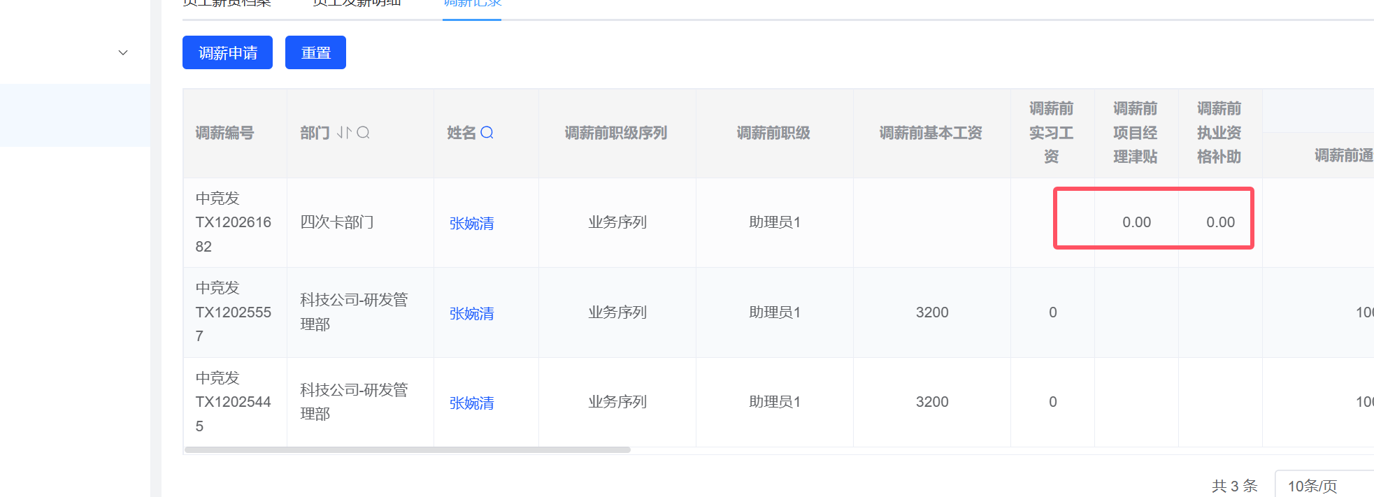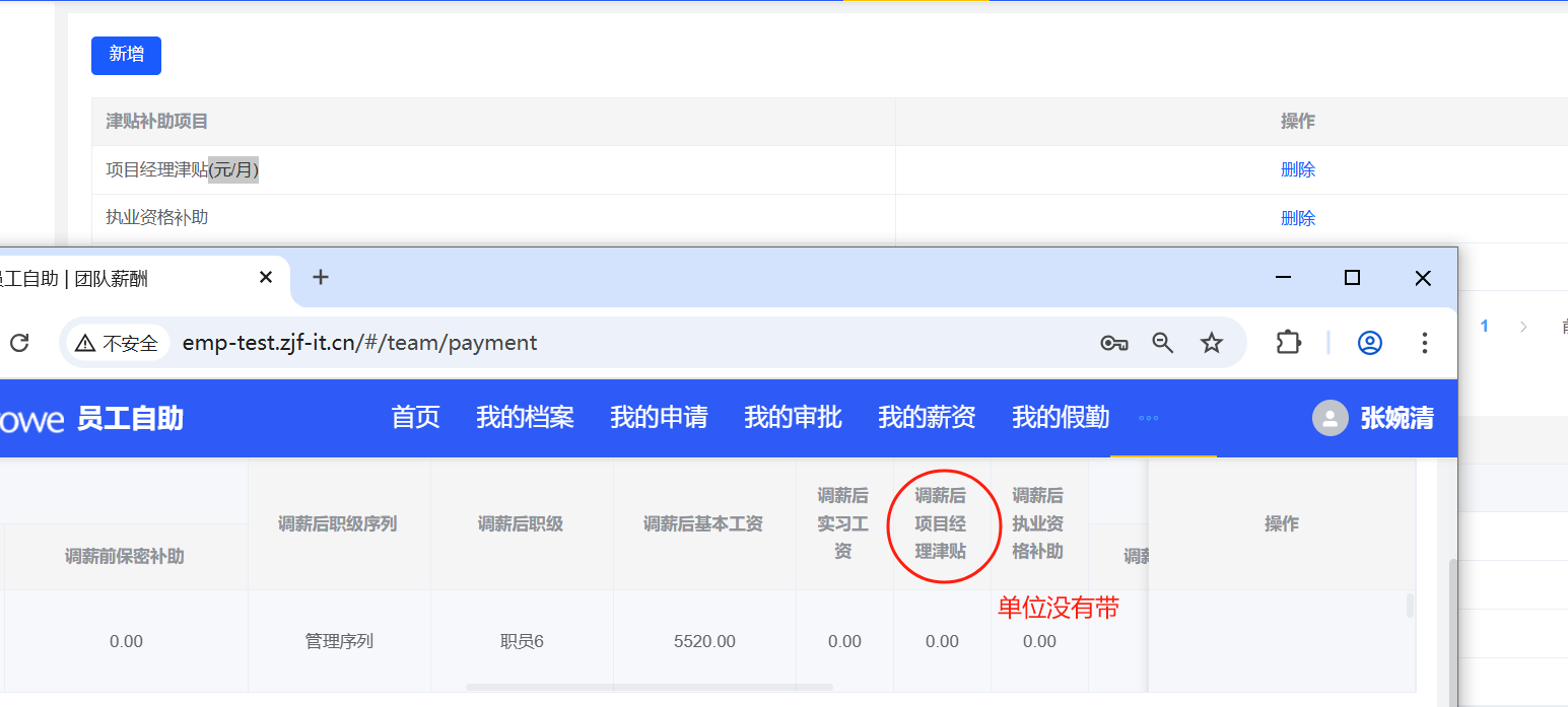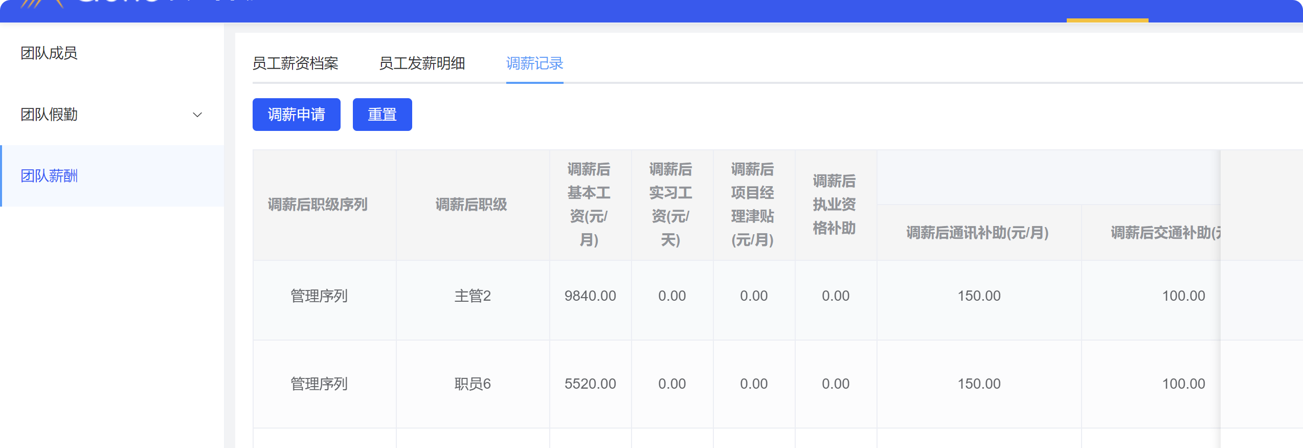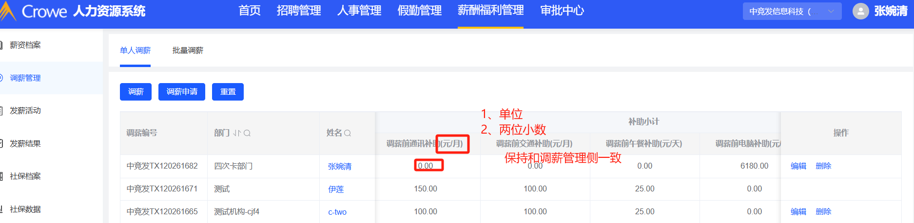 已关闭我的团队-团队调薪-调薪:调薪后列表中显示1、缺少单位 2、有些未保留两位小数