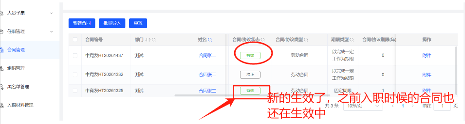 合同-新的合同生效了,通过入职管理上传的合同也仍在生效中