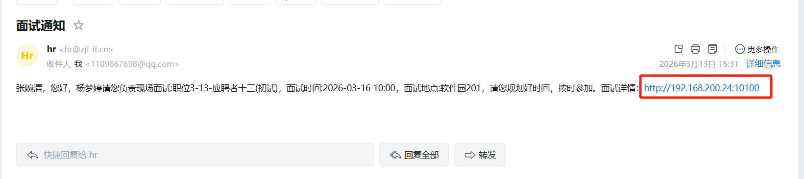 面试通知邮件中的面试详情链接内容为空