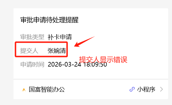 微信公众号:提交人显示错误,显示的处理人
