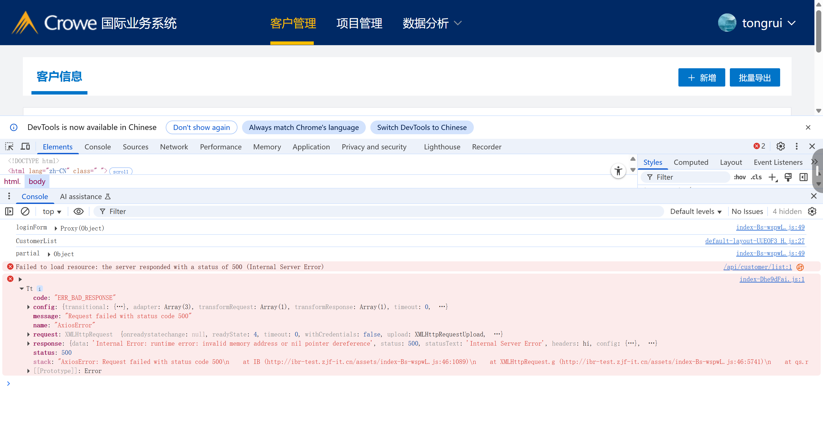 业务人员账号报错