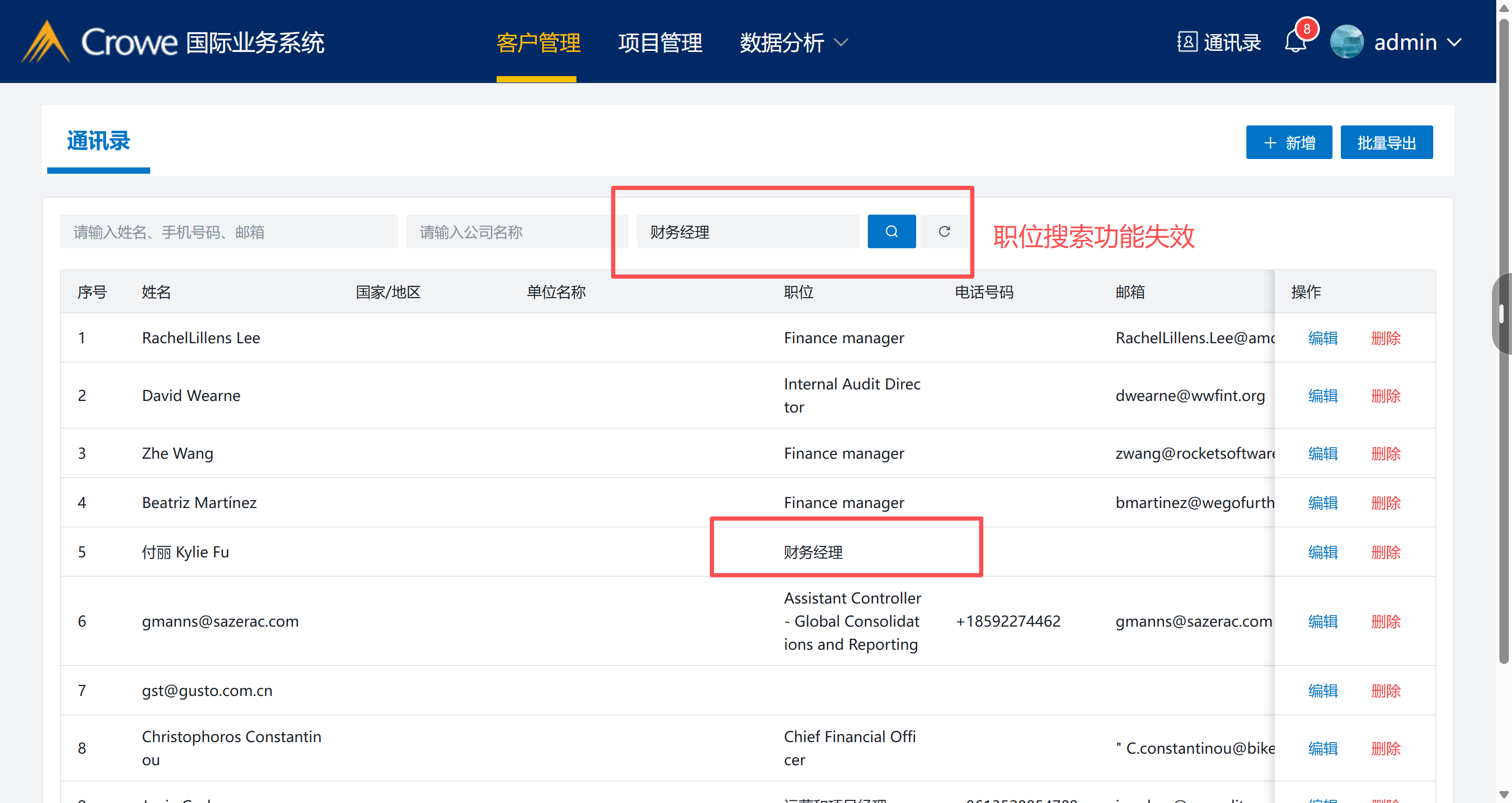 通讯录职位搜索功能失效