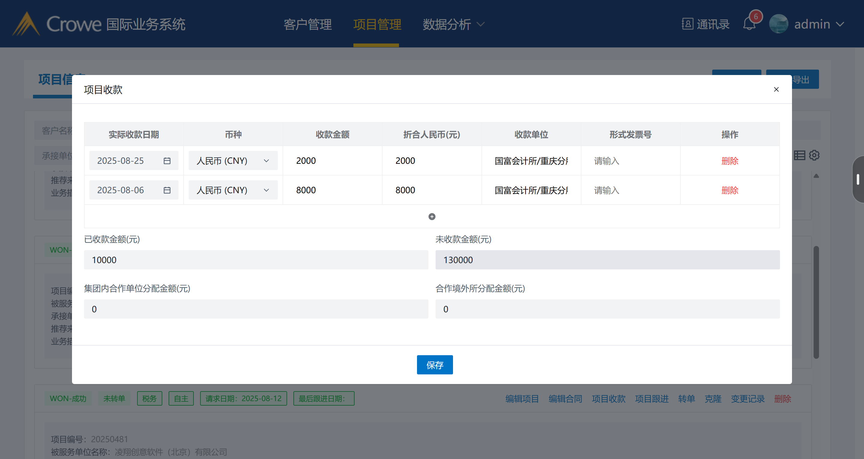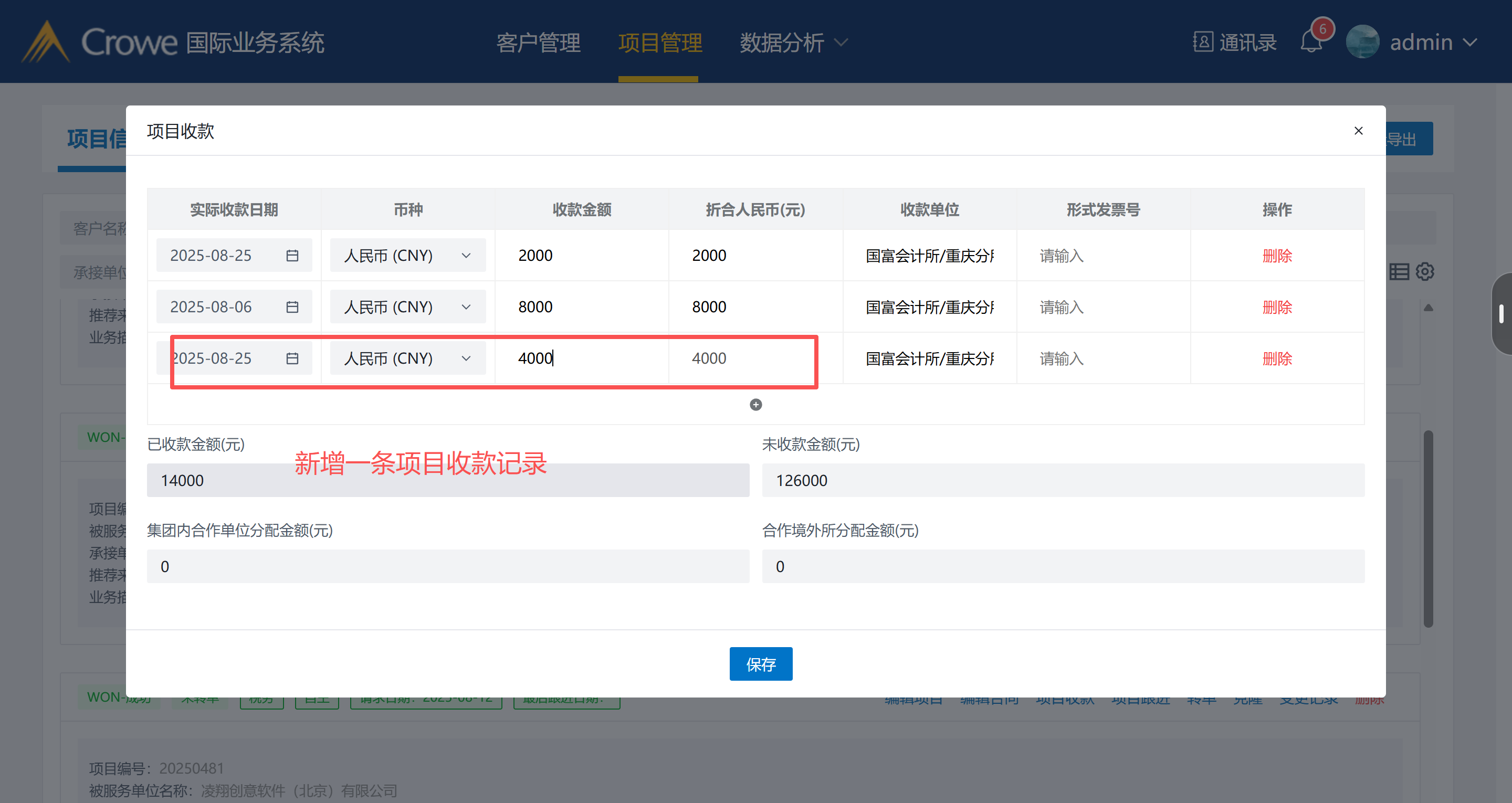 【接口调整】原来单个添加接口,现在改成项目收款按表格数据一起保存