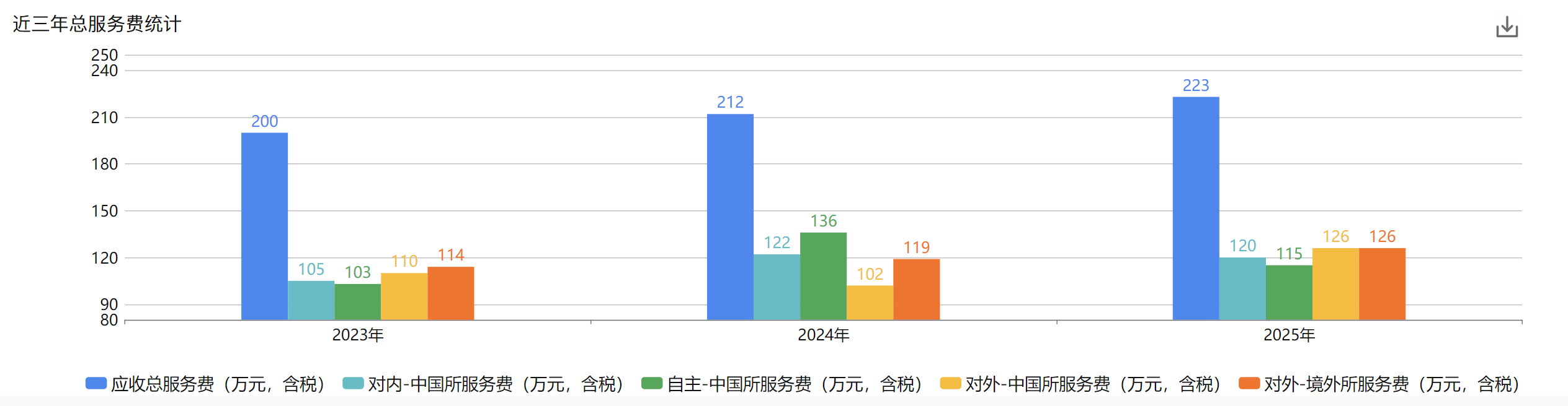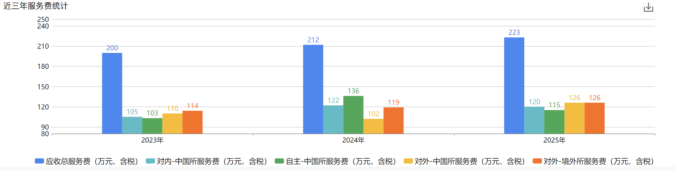 (1)近三年服务费统计:下图1改成图2