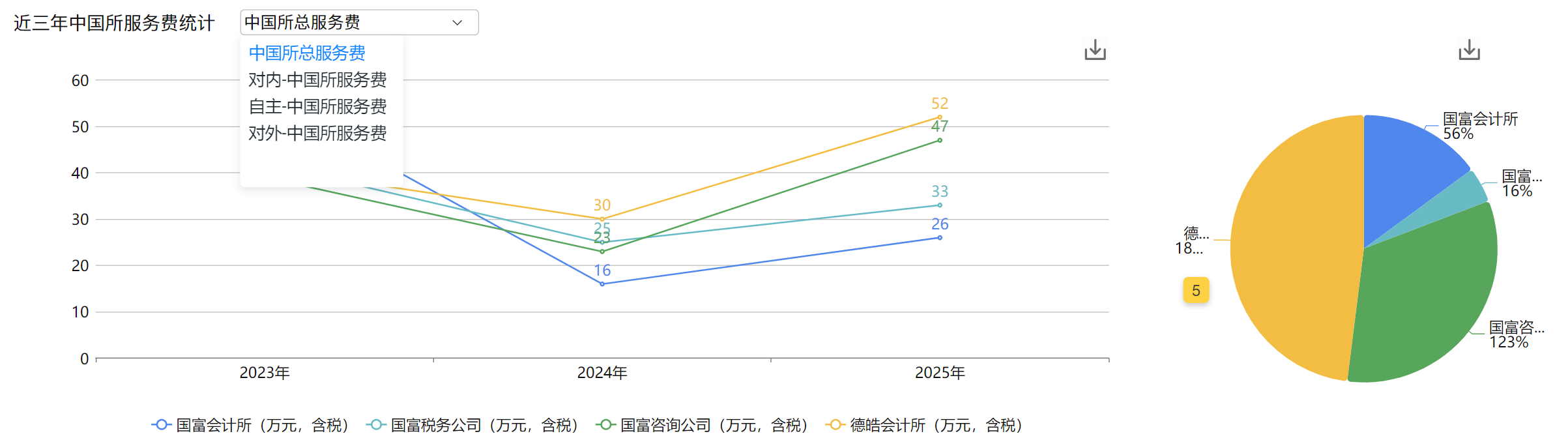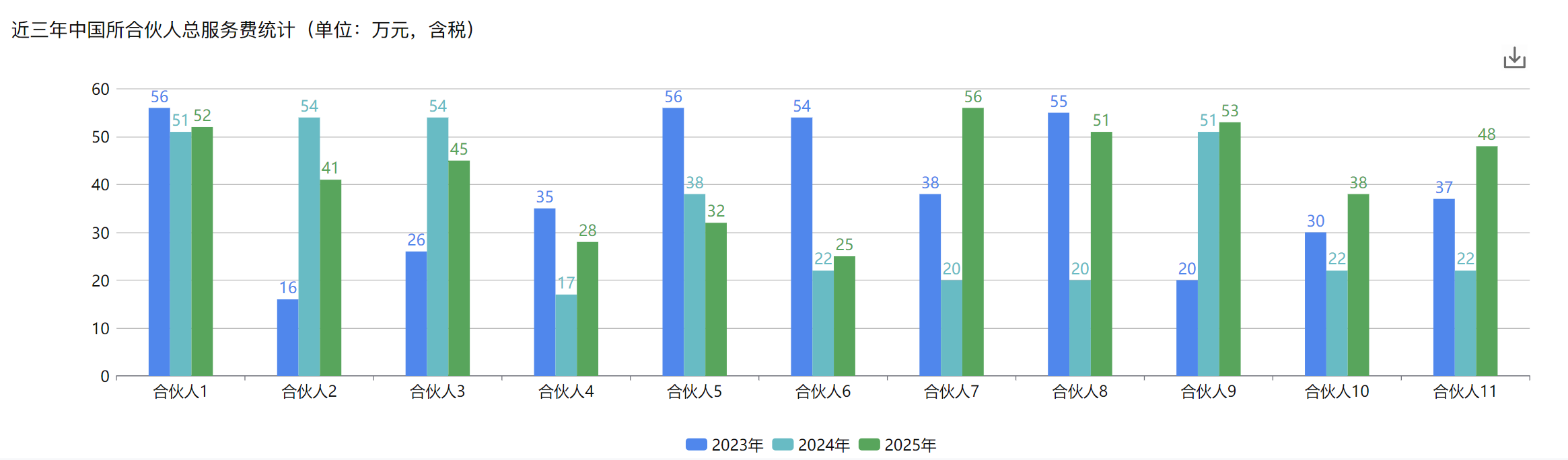 (3)近三年中国所合伙人总服务费统计(单位:万元,含税):新增图表