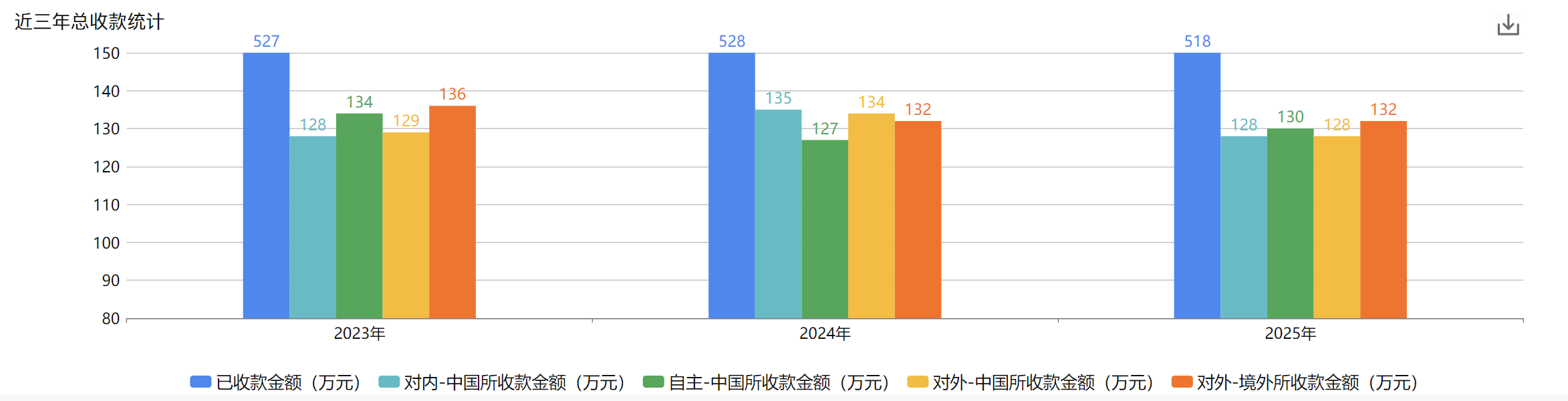 (1)近三年总收款统计:下图1改成图2