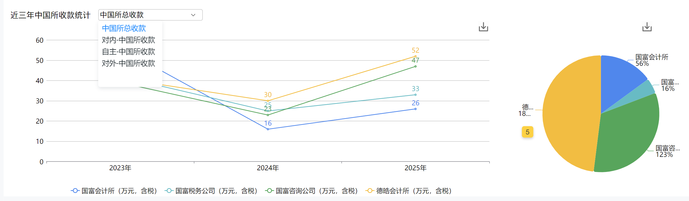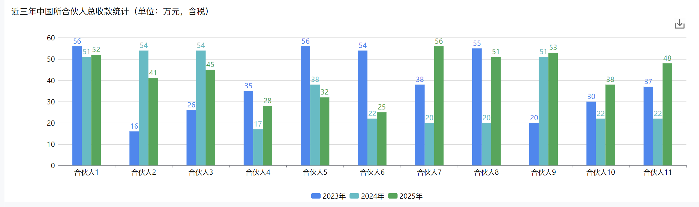 (3)近三年中国所合伙人总收款统计(单位:万元,含税):增加图表