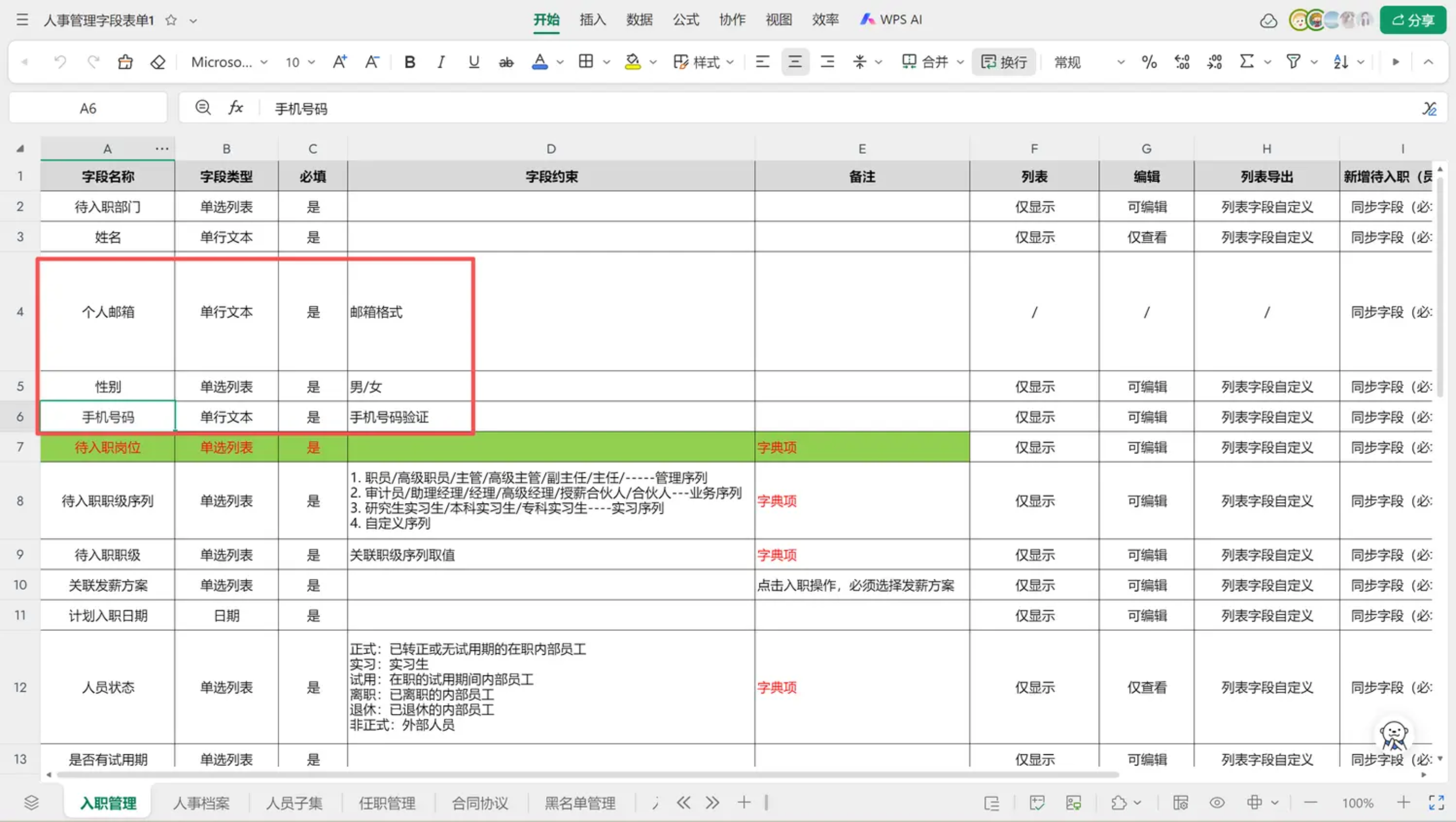 列表缺少字段个人邮箱