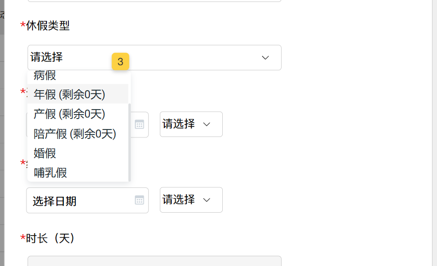 新增需求:余额为0的,休假申请选择休假类型时,余额为0的假期置灰,无法选中