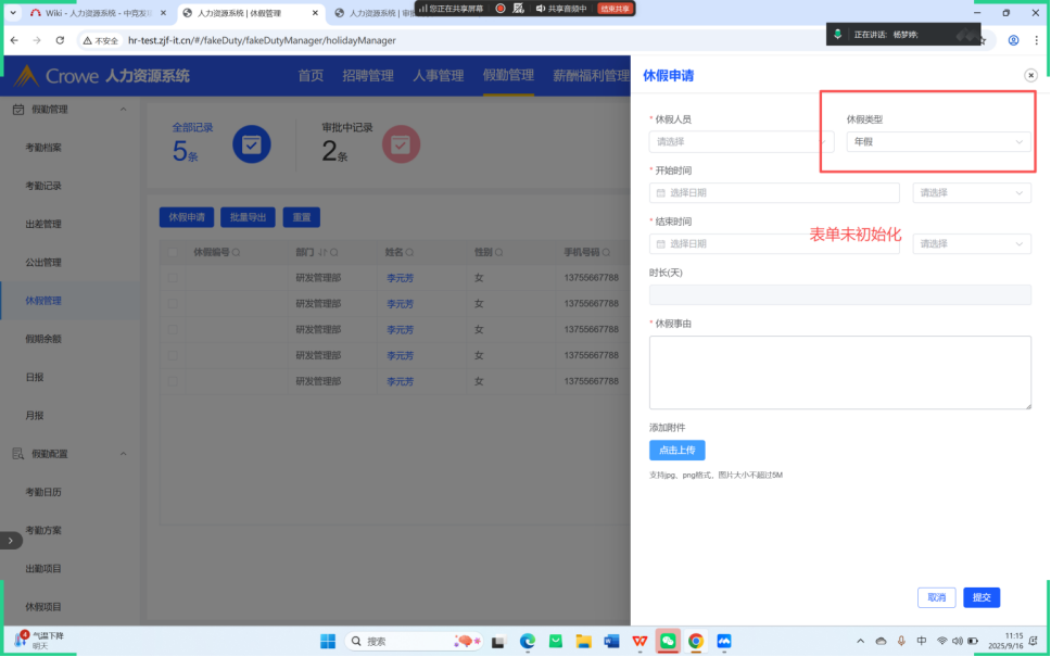 复测结果:休假申请表单取消后依旧未初始化