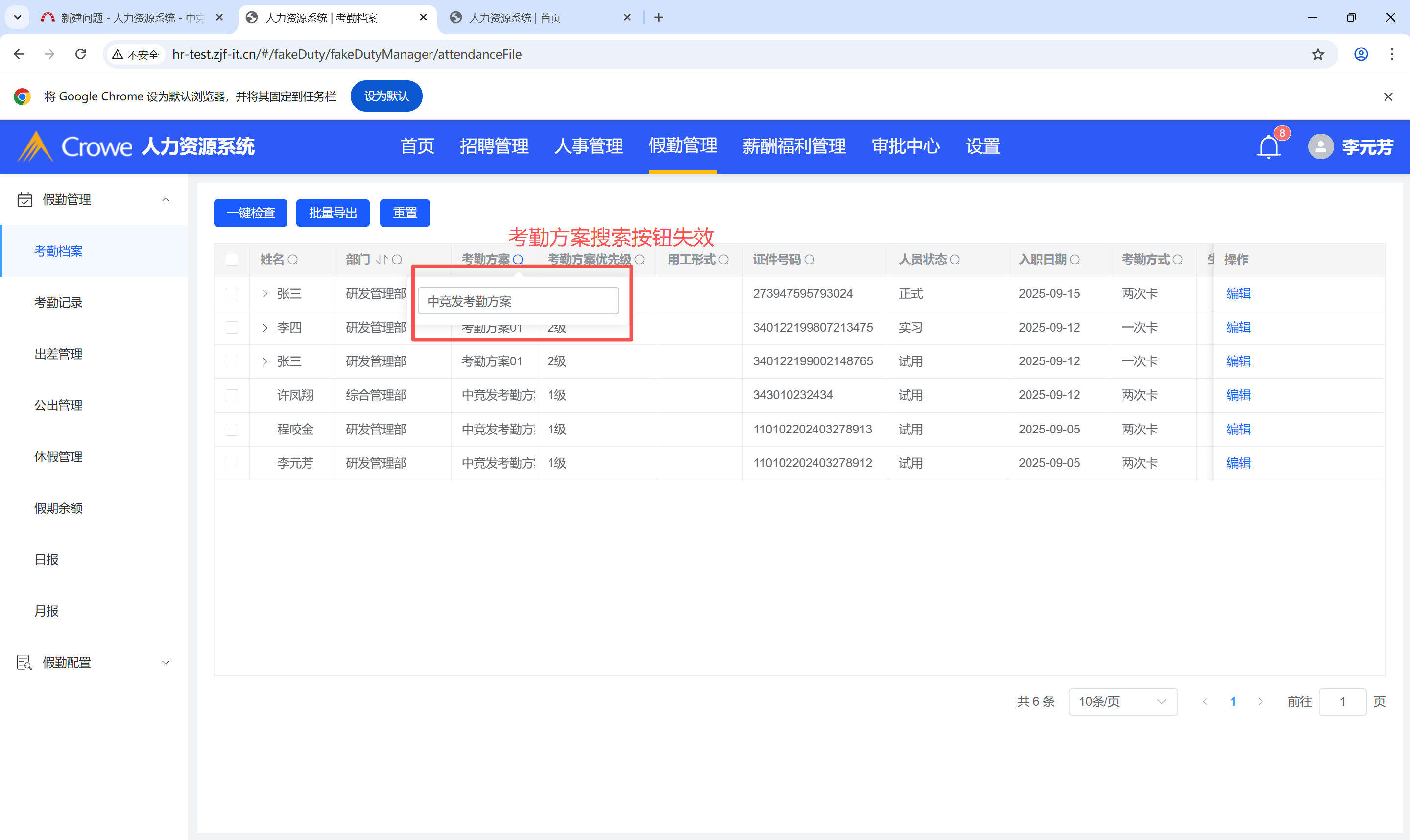 考勤方案名称搜索按钮失效