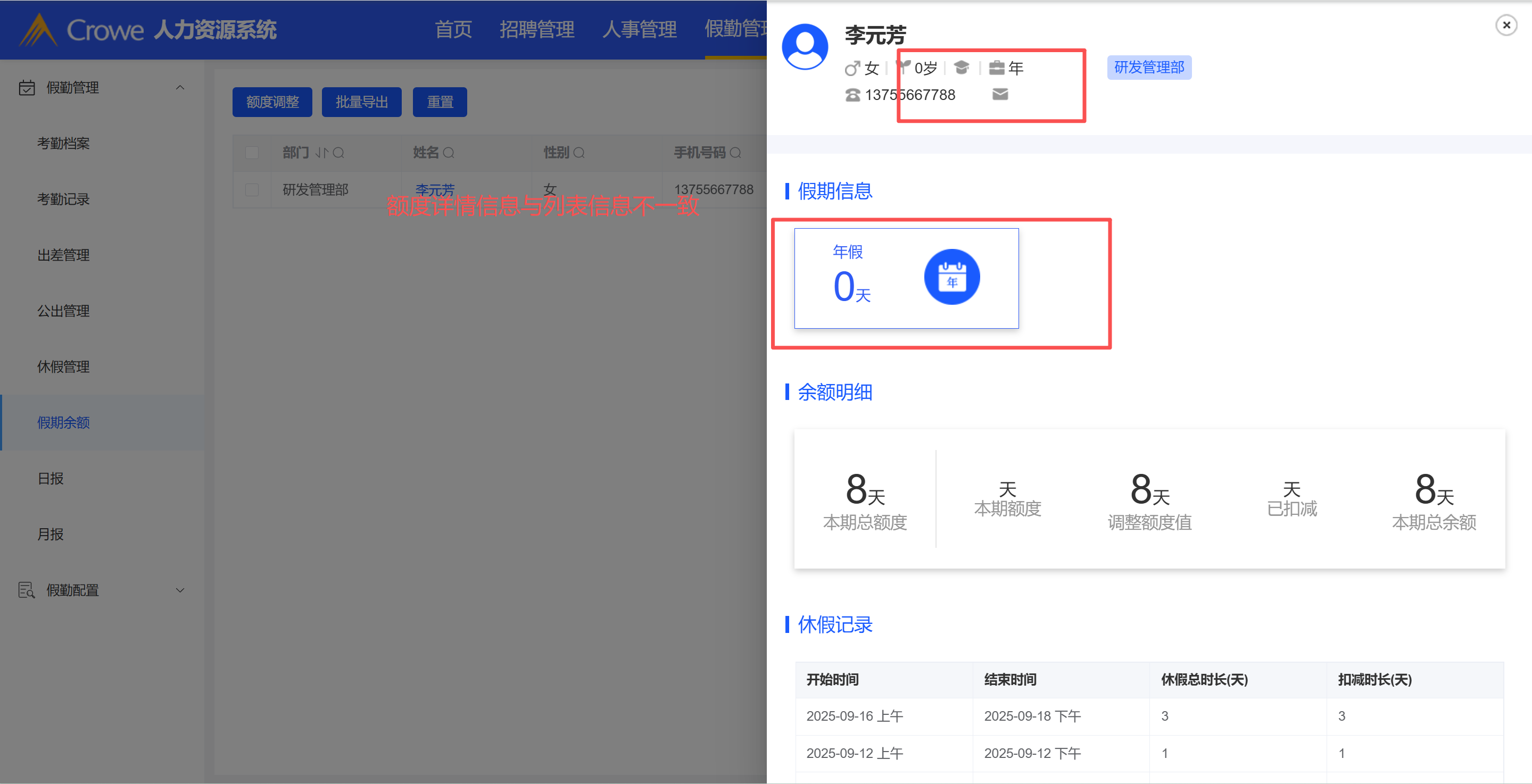 额度详情展示信息与列表数据不一致