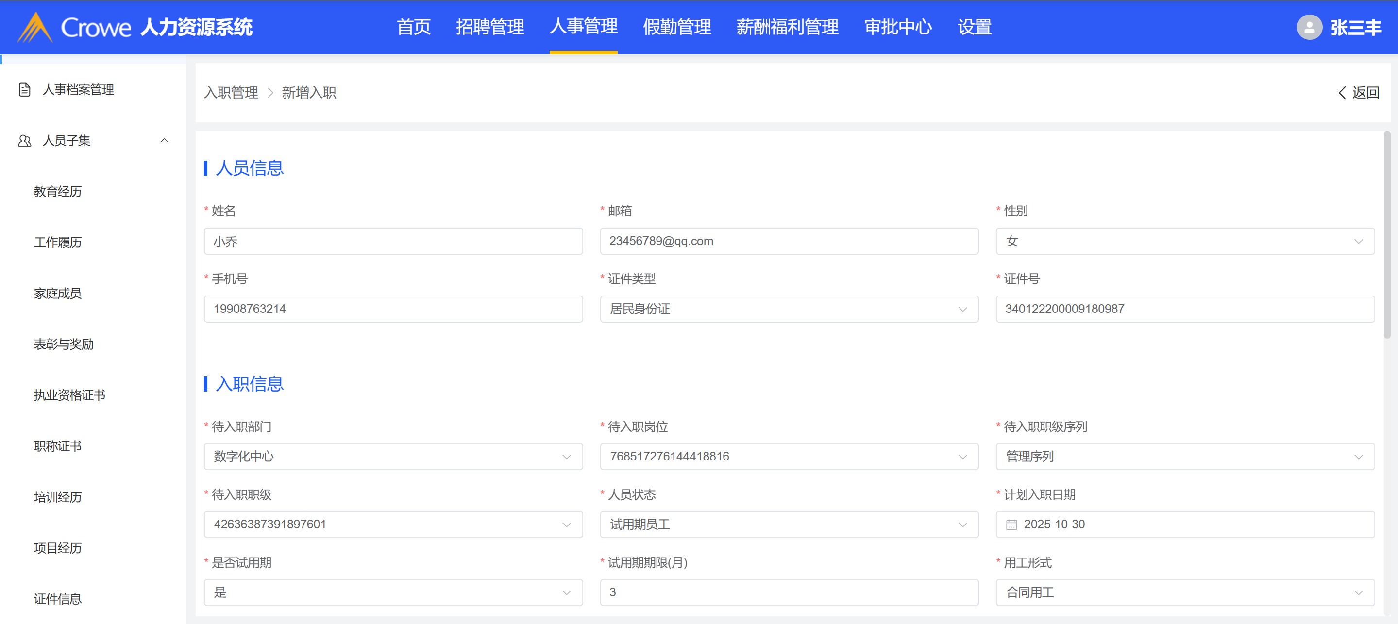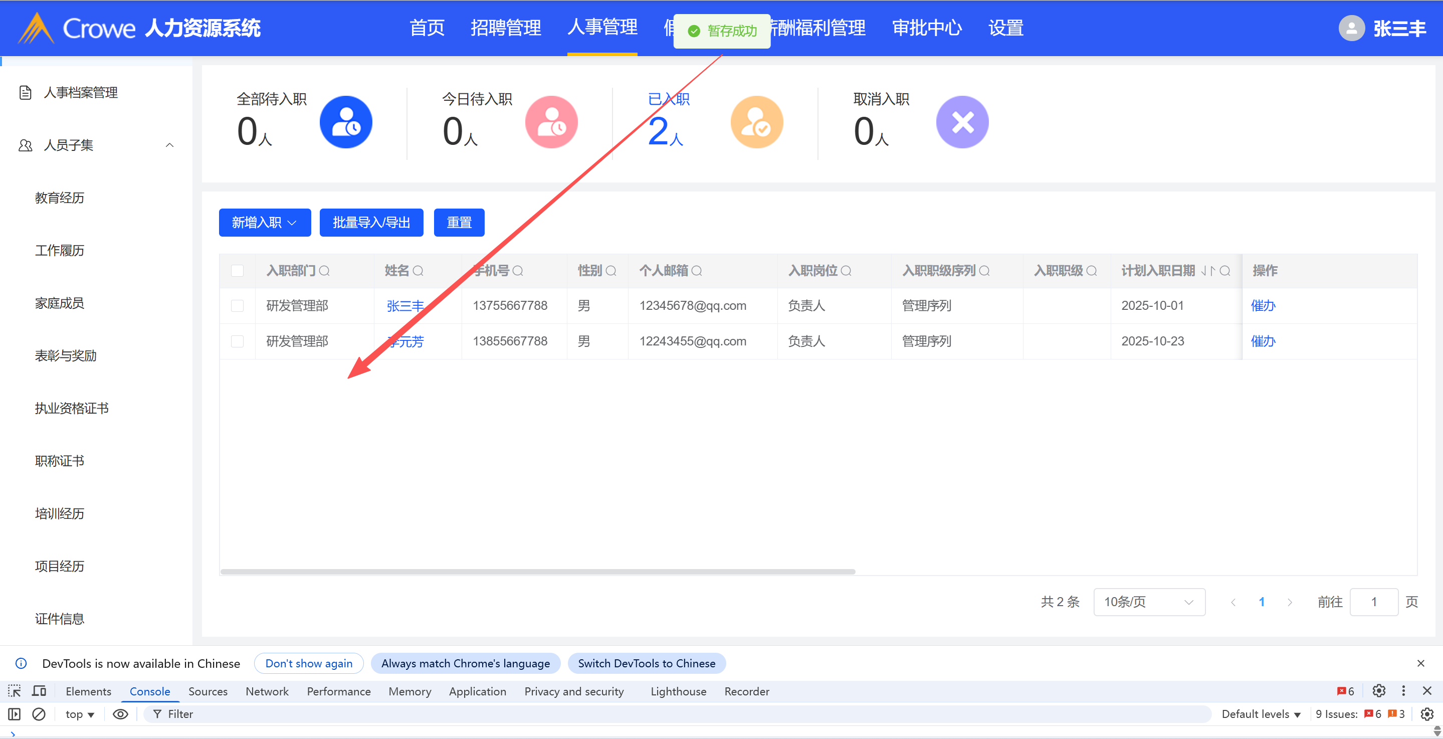 入职管理-暂存的员工入职须在列表中展示一条草稿数据