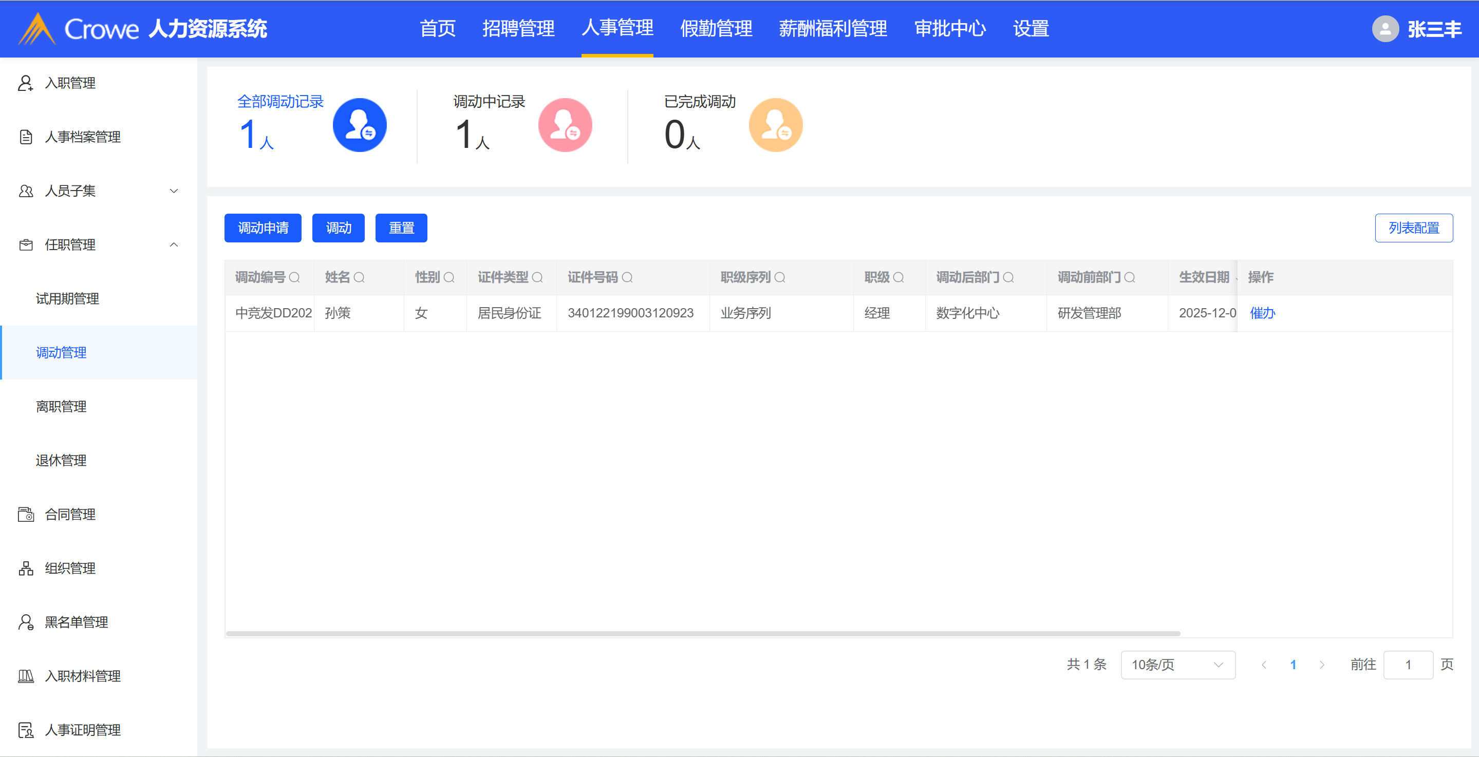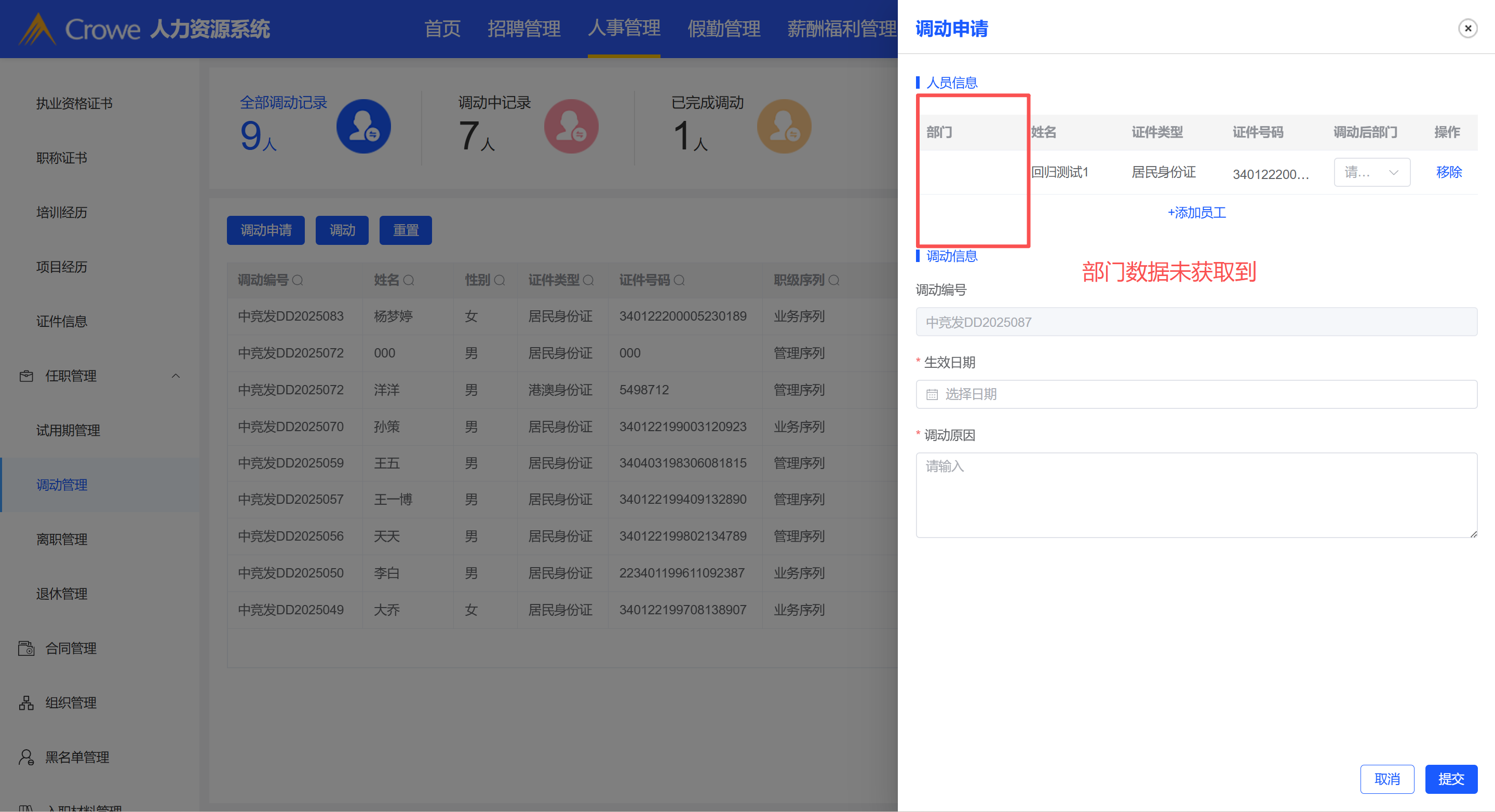 调动管理-hr申请的员工调动表单,hr的审批列表未获取到调动数据