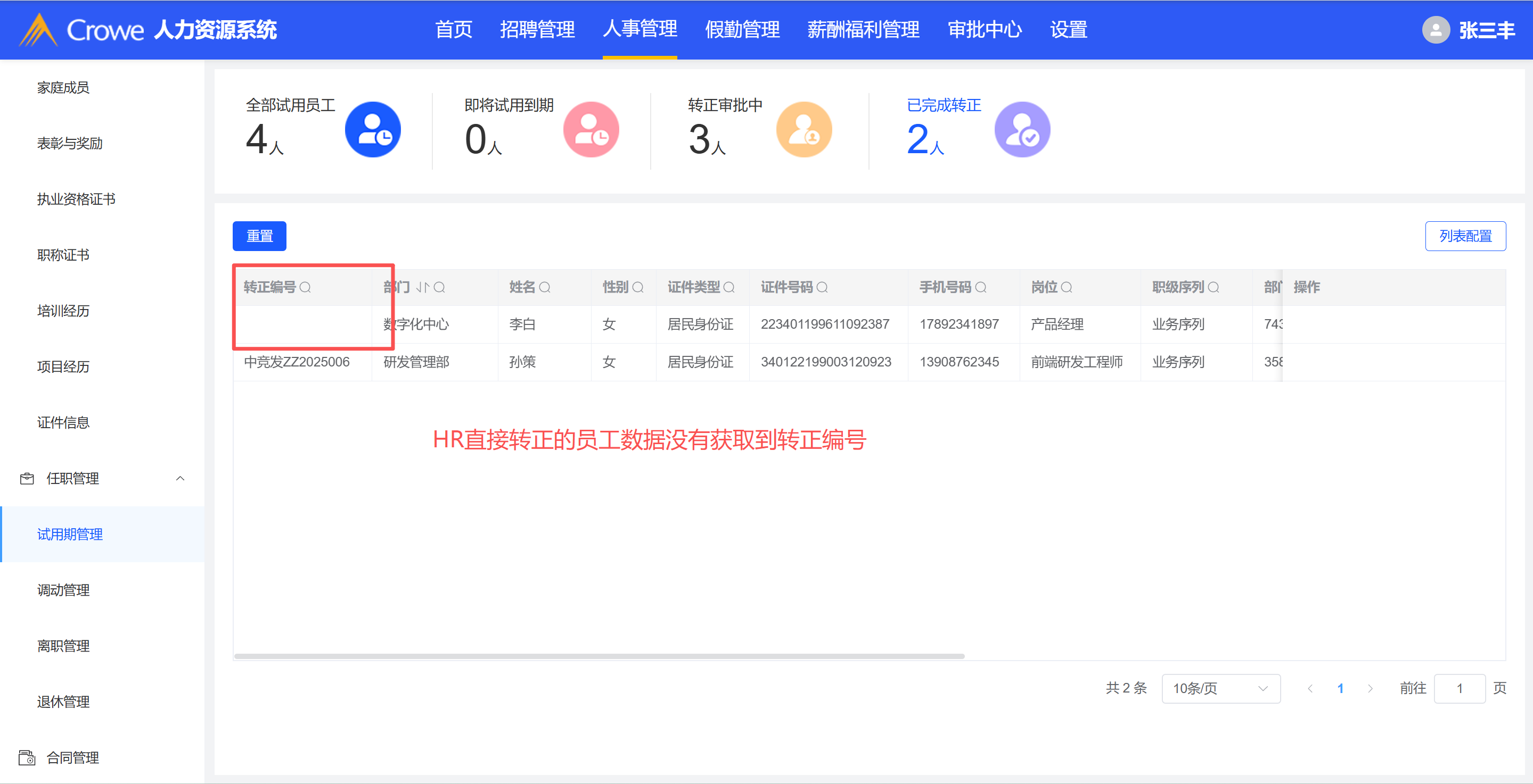试用期管理-HR直接转正的员工数据没有获取到转正编号