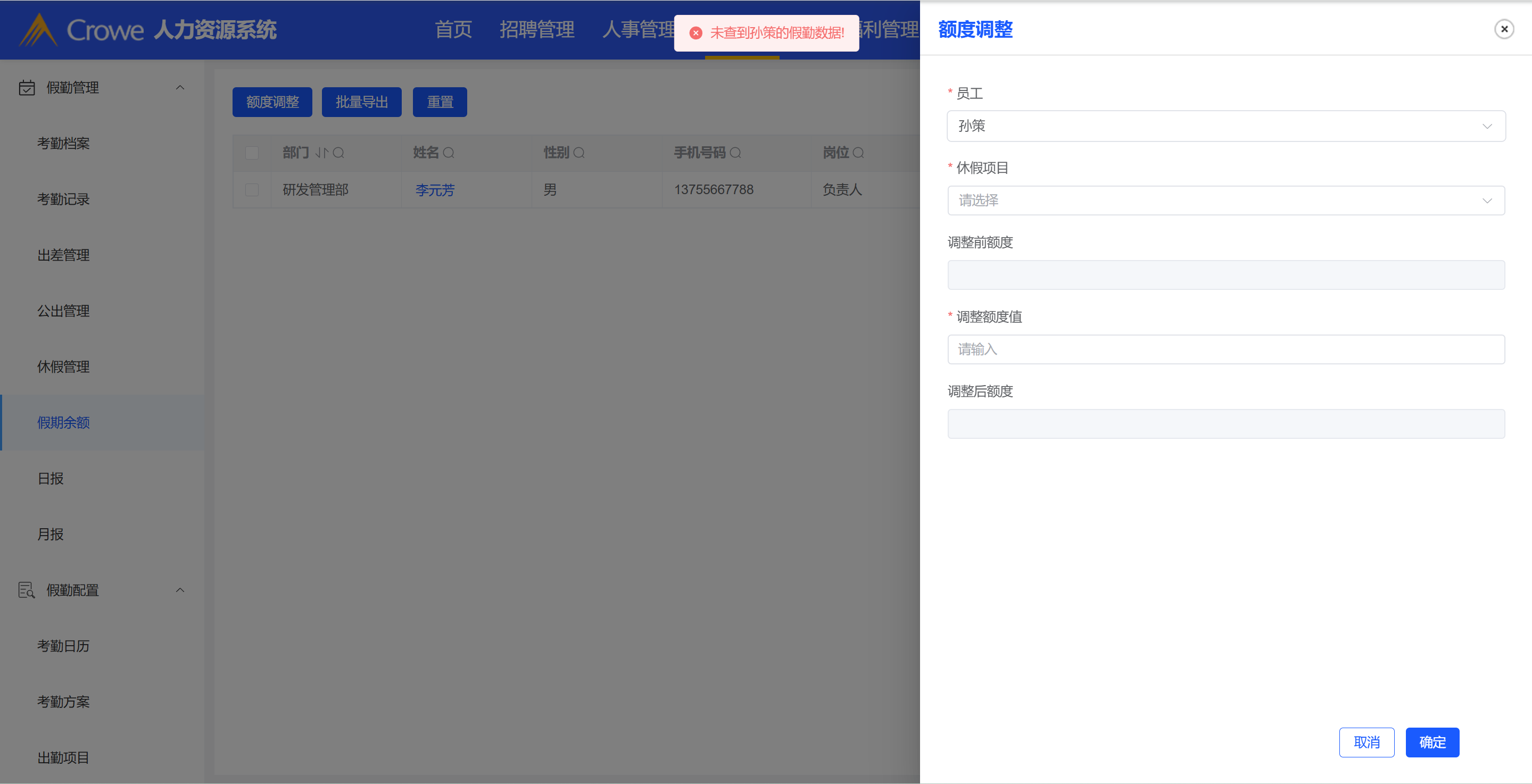假期余额-转正后的人员提示没有假期余额,但没转正的不会提醒