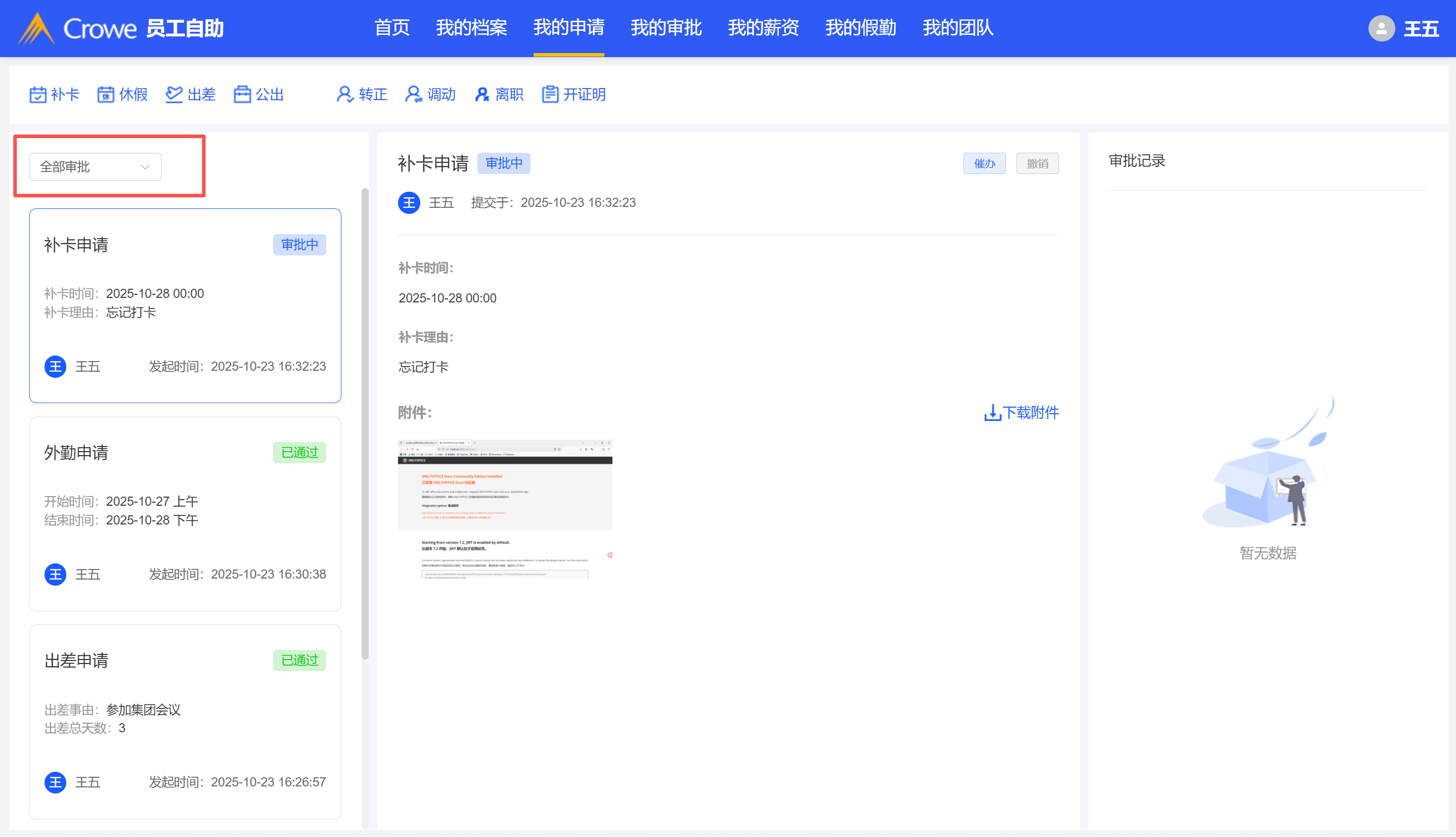 员工自助我的申请筛选条件无效