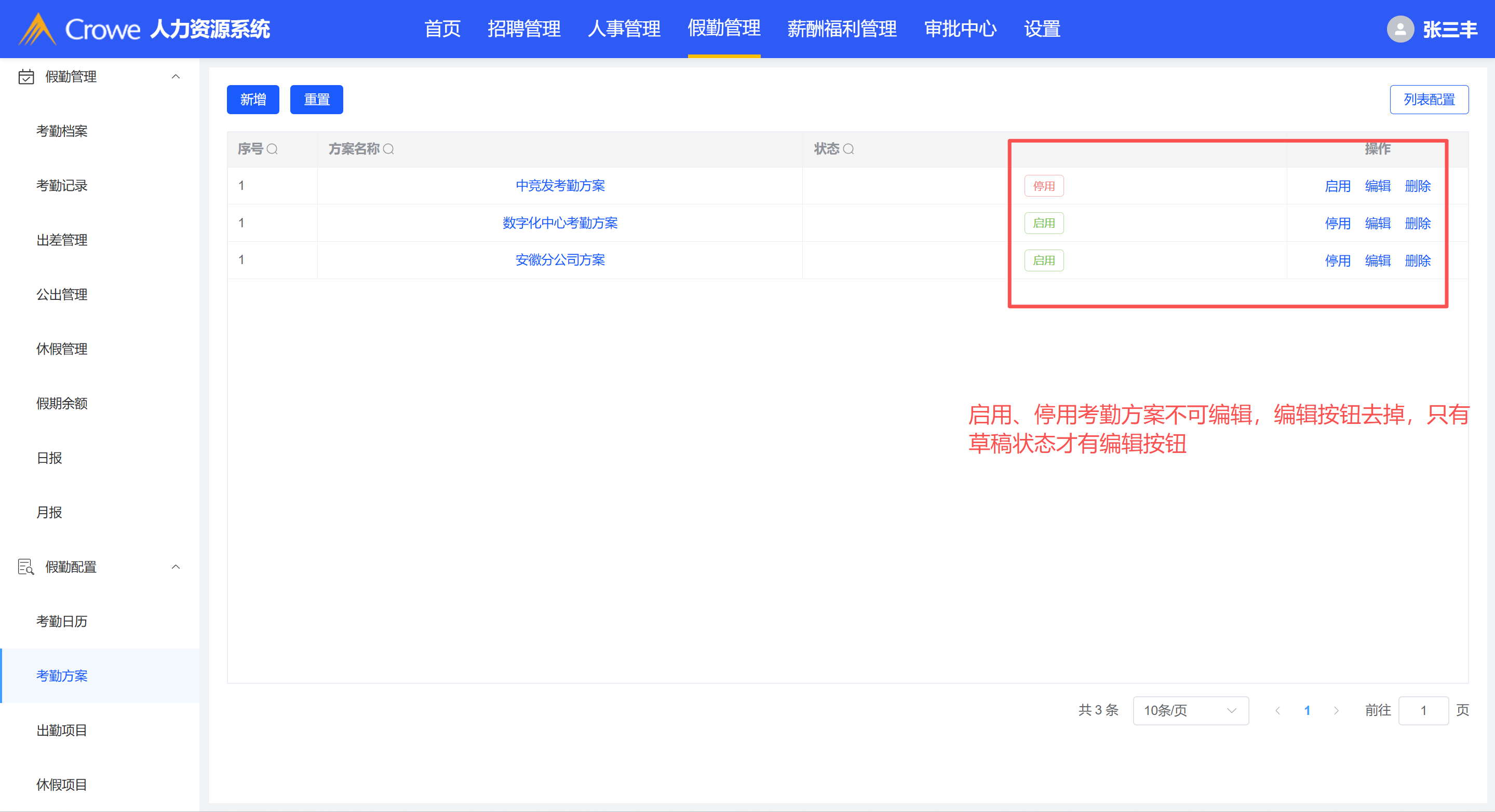 考勤方案-不属于草稿状态的方案不需要编辑操作