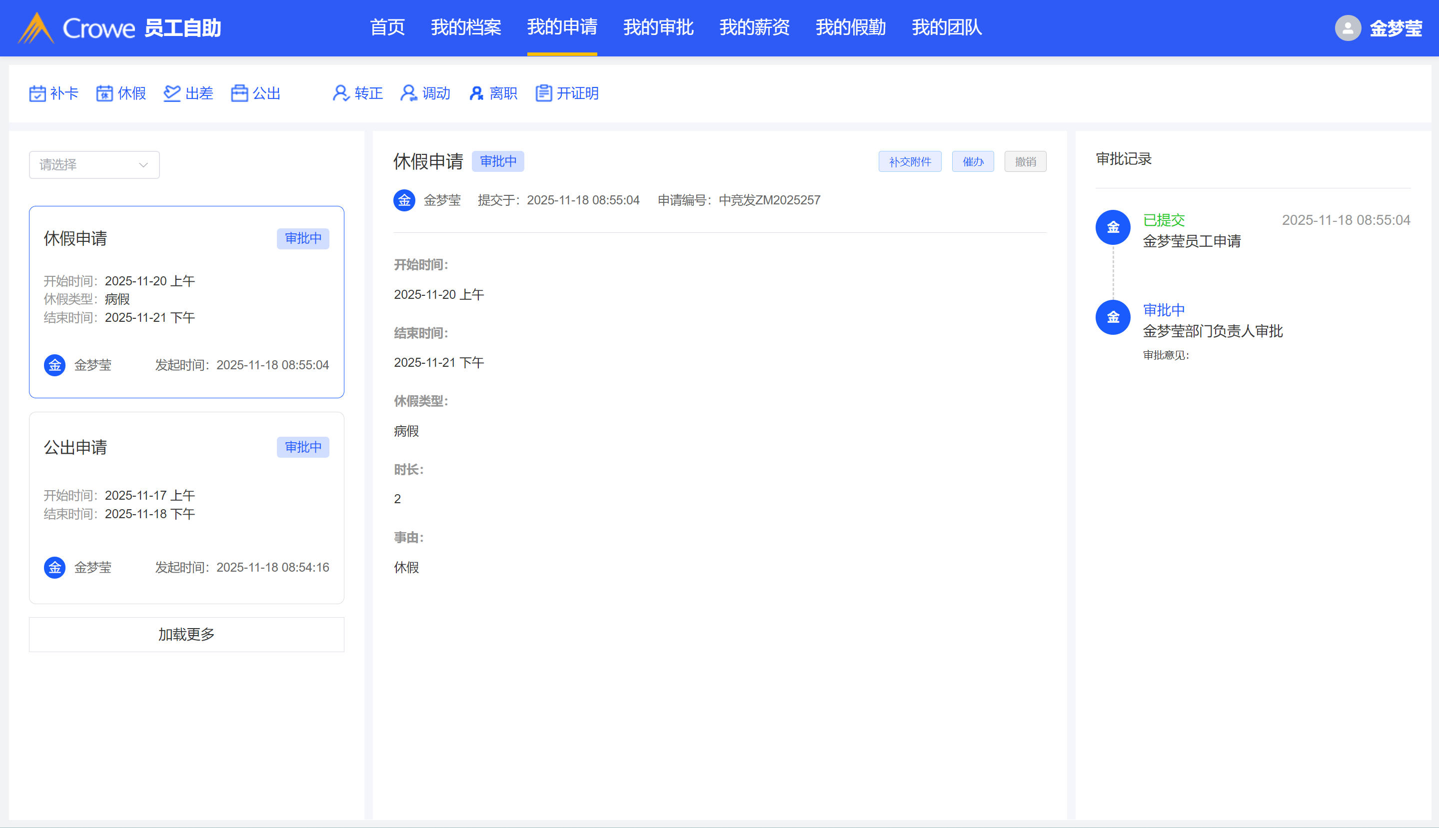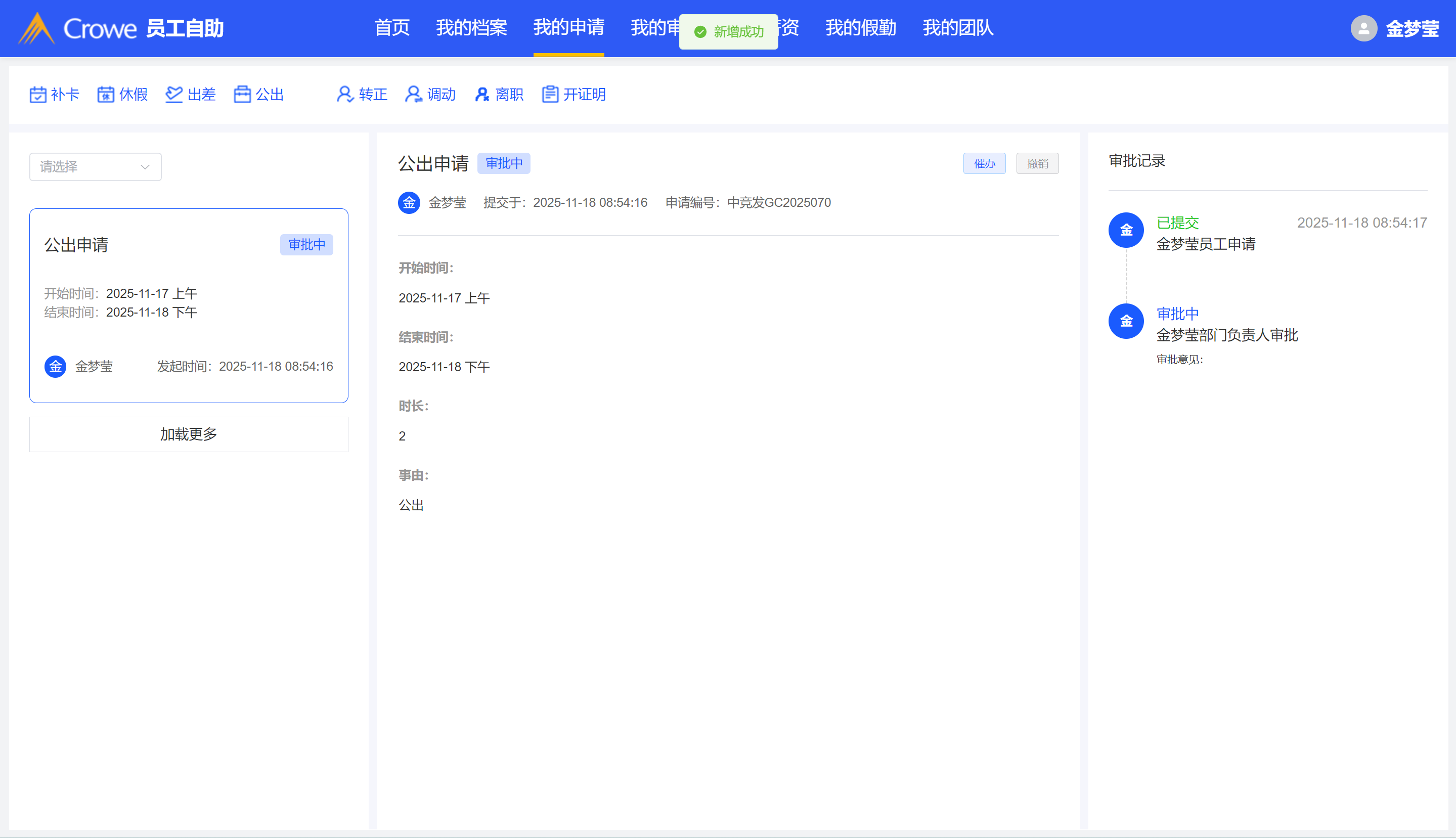 休假申请和公出申请表单修改