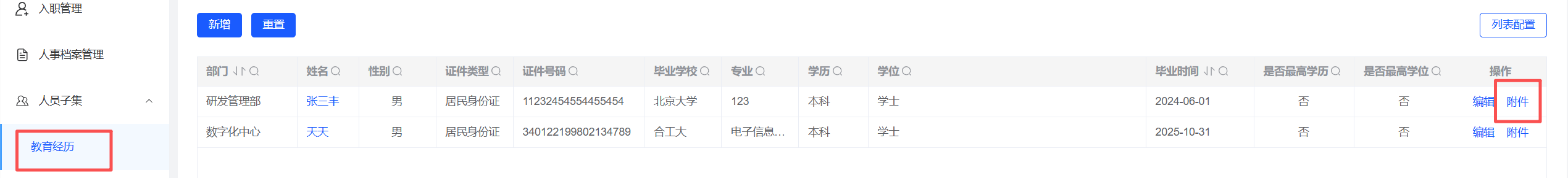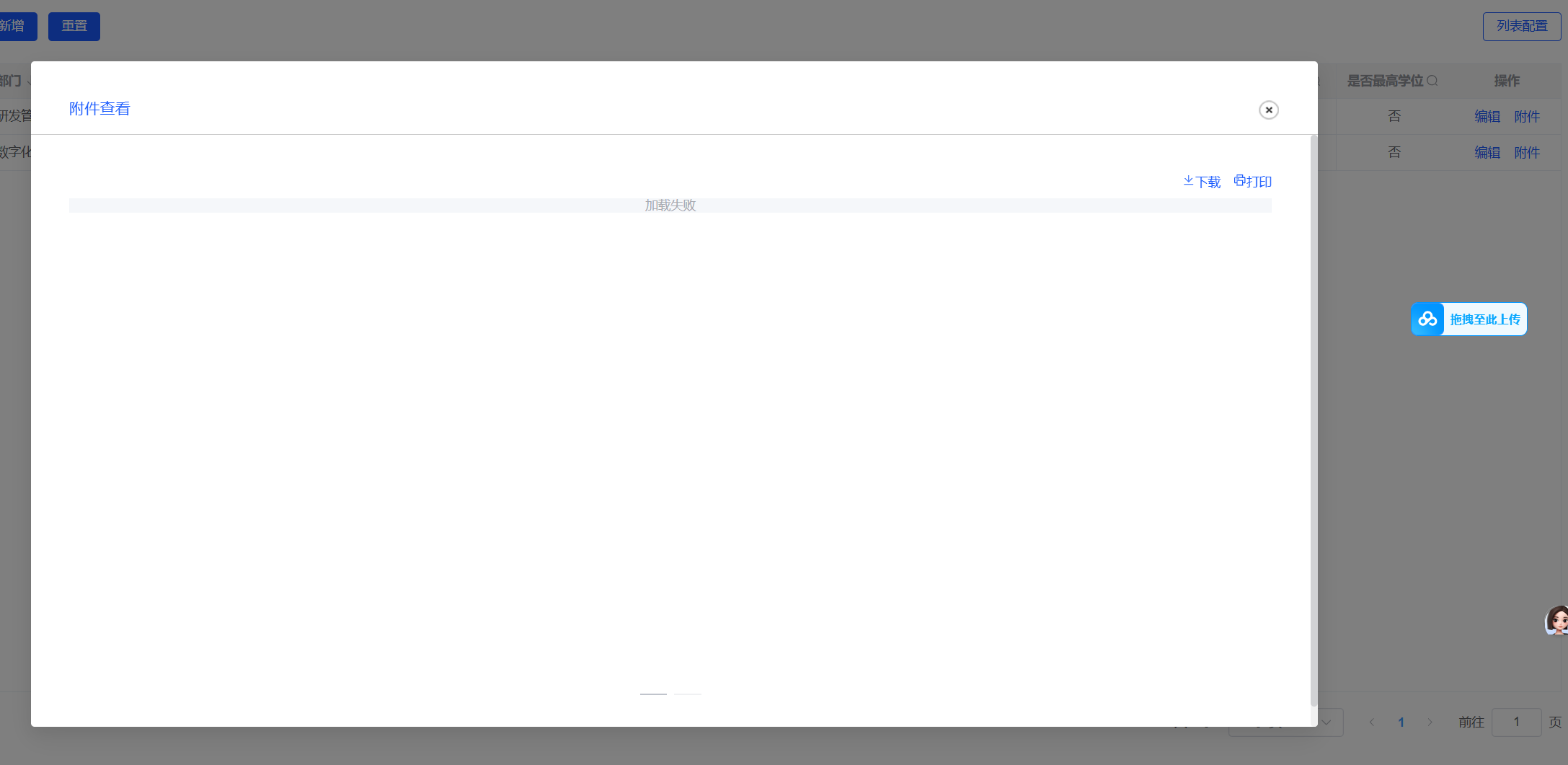 人事管理-人员子集-教育经历模块:附件点开不显示。