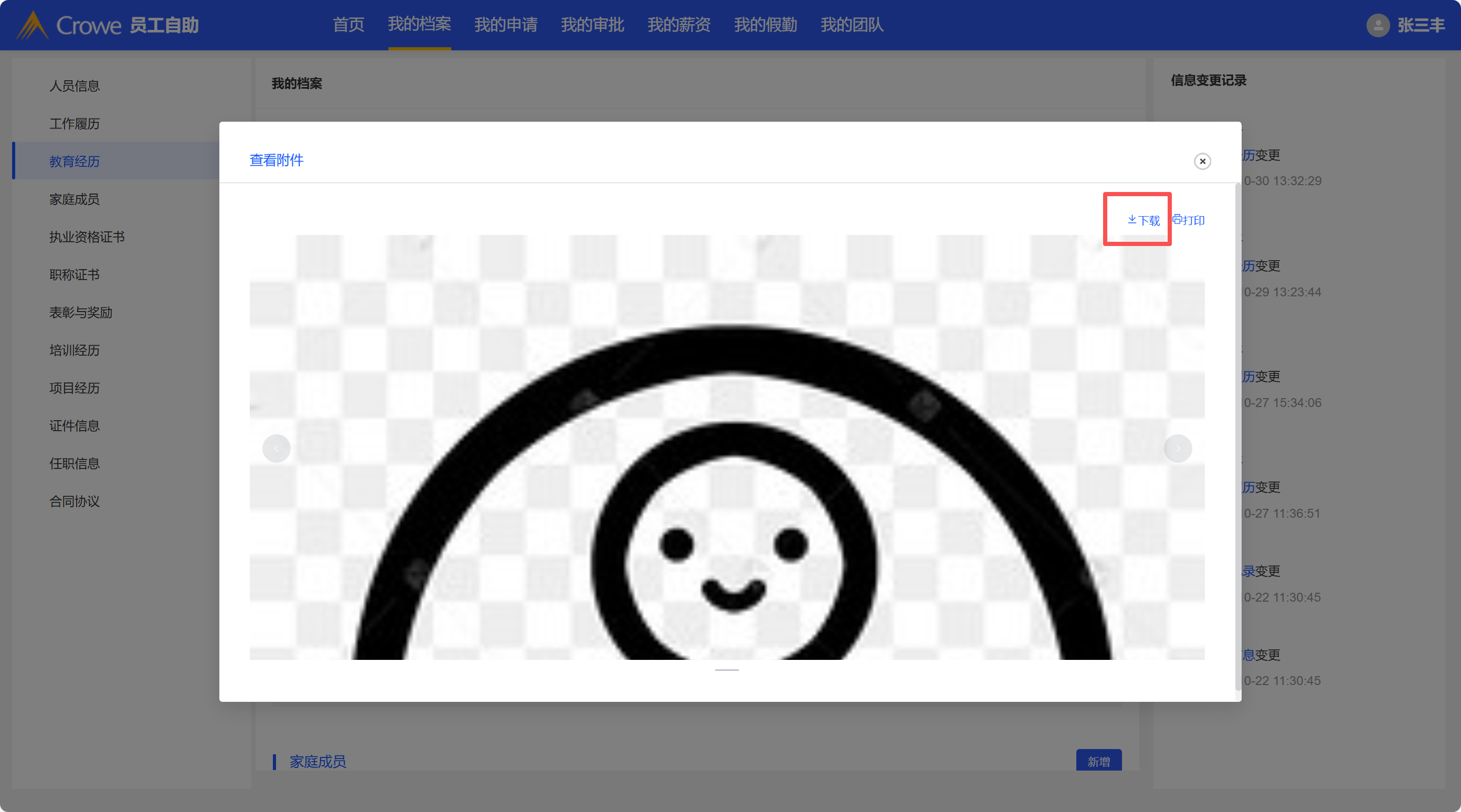 已关闭完善人员档案申请页面中上传的附件显示不出来,审批完成后附件无法下载