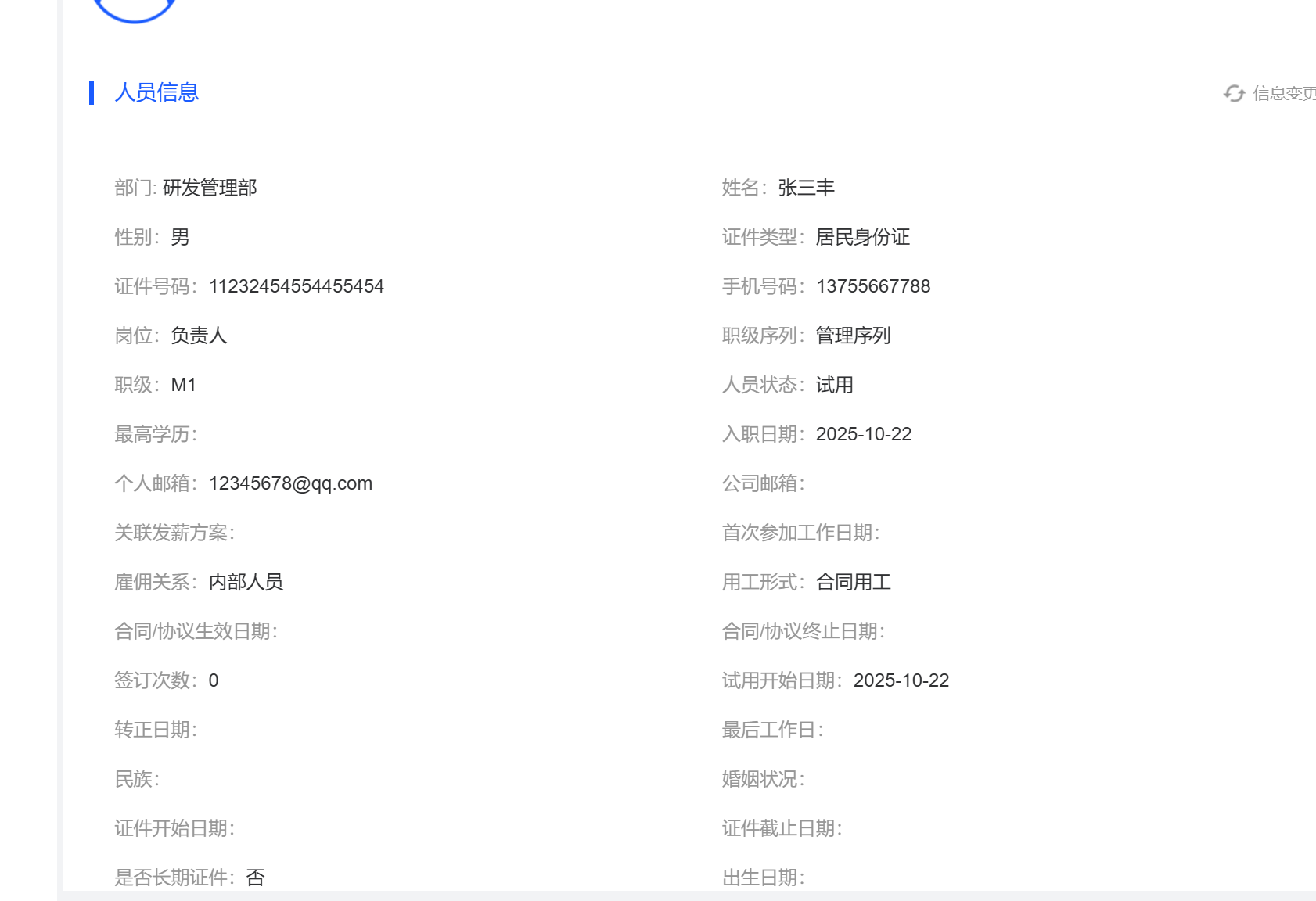 2.我的档案“人员信息”中没有年龄这一字段,年龄不用员工填写,根据身份证自动计算出来