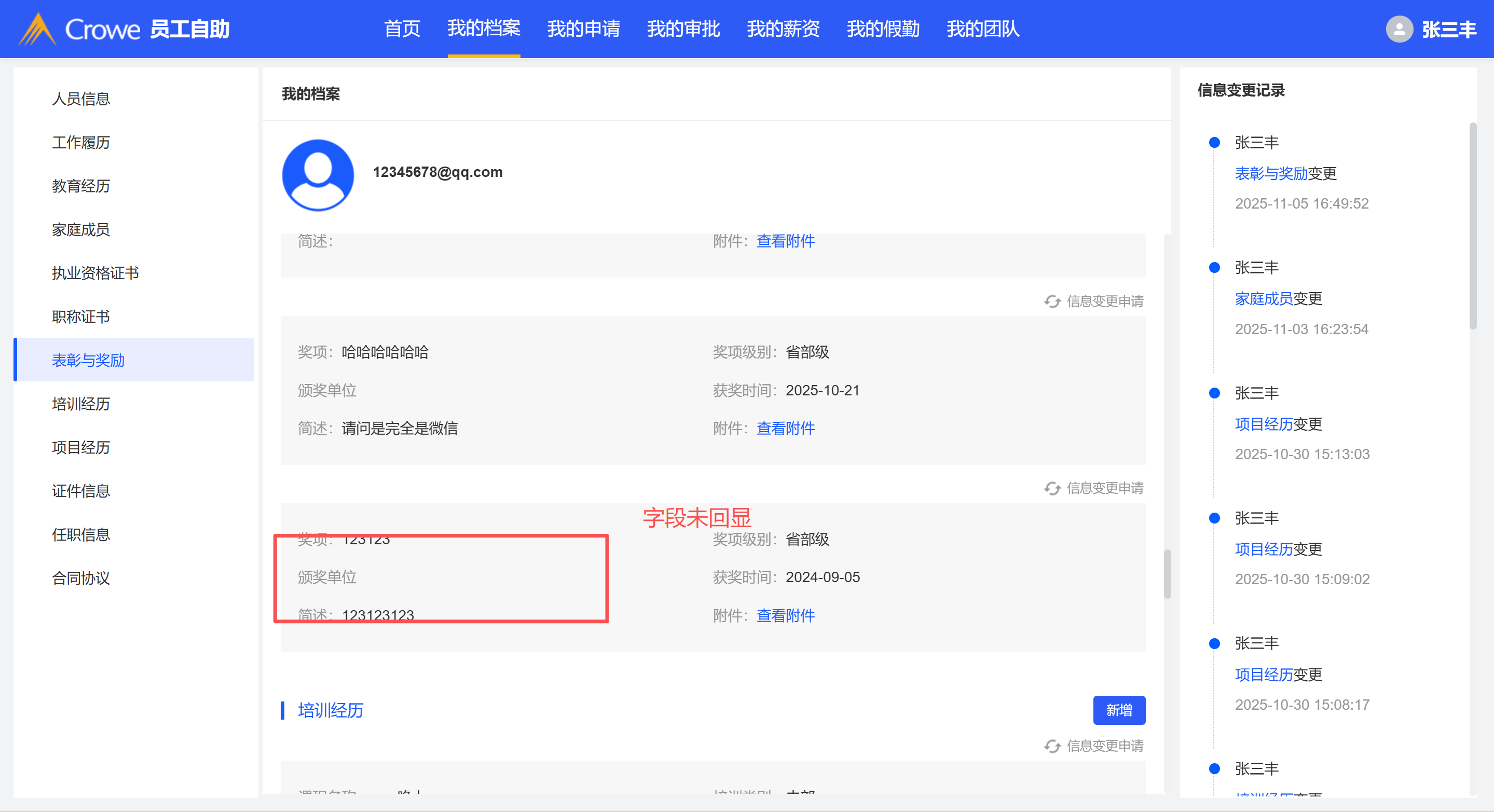 表彰与奖励中,颁奖单位名称显示不出来
