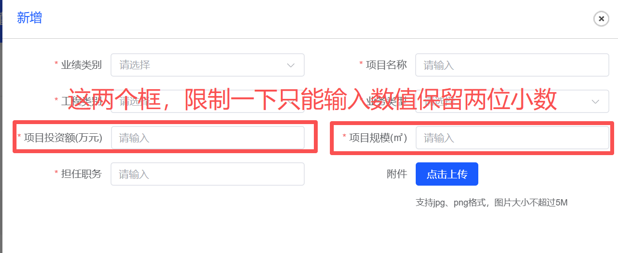 我的档案中,项目经历数值输入限制格式