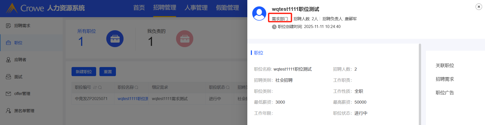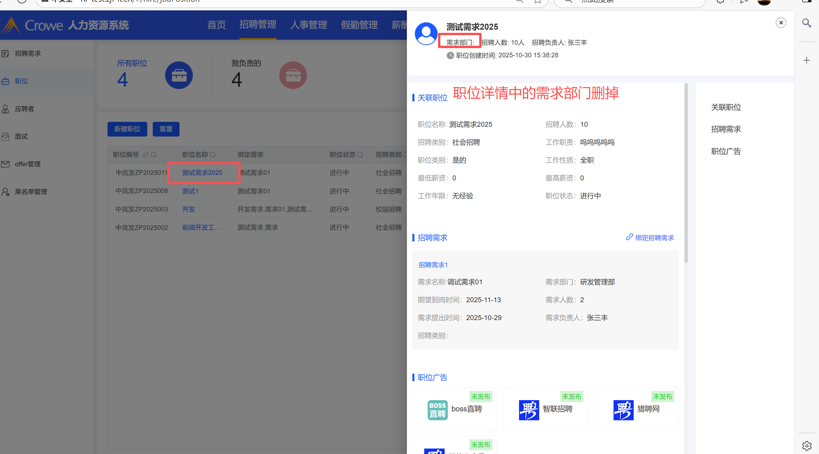 招聘管理中,职位详情表中的需求部门删掉