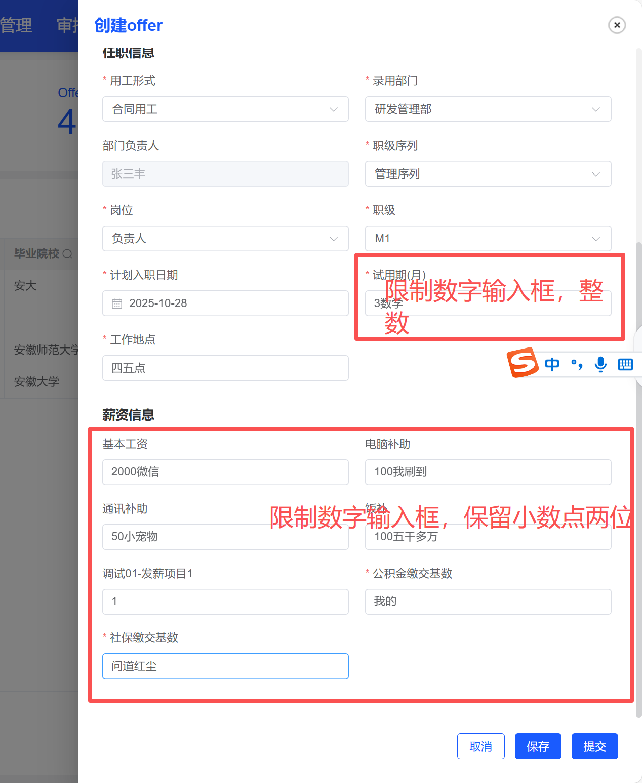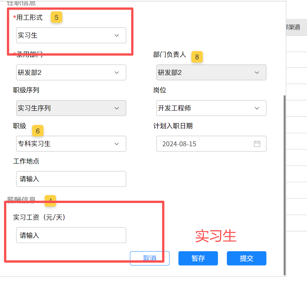 3.薪资信息字段调整,实习生和其他用工形式的薪资信息不一样