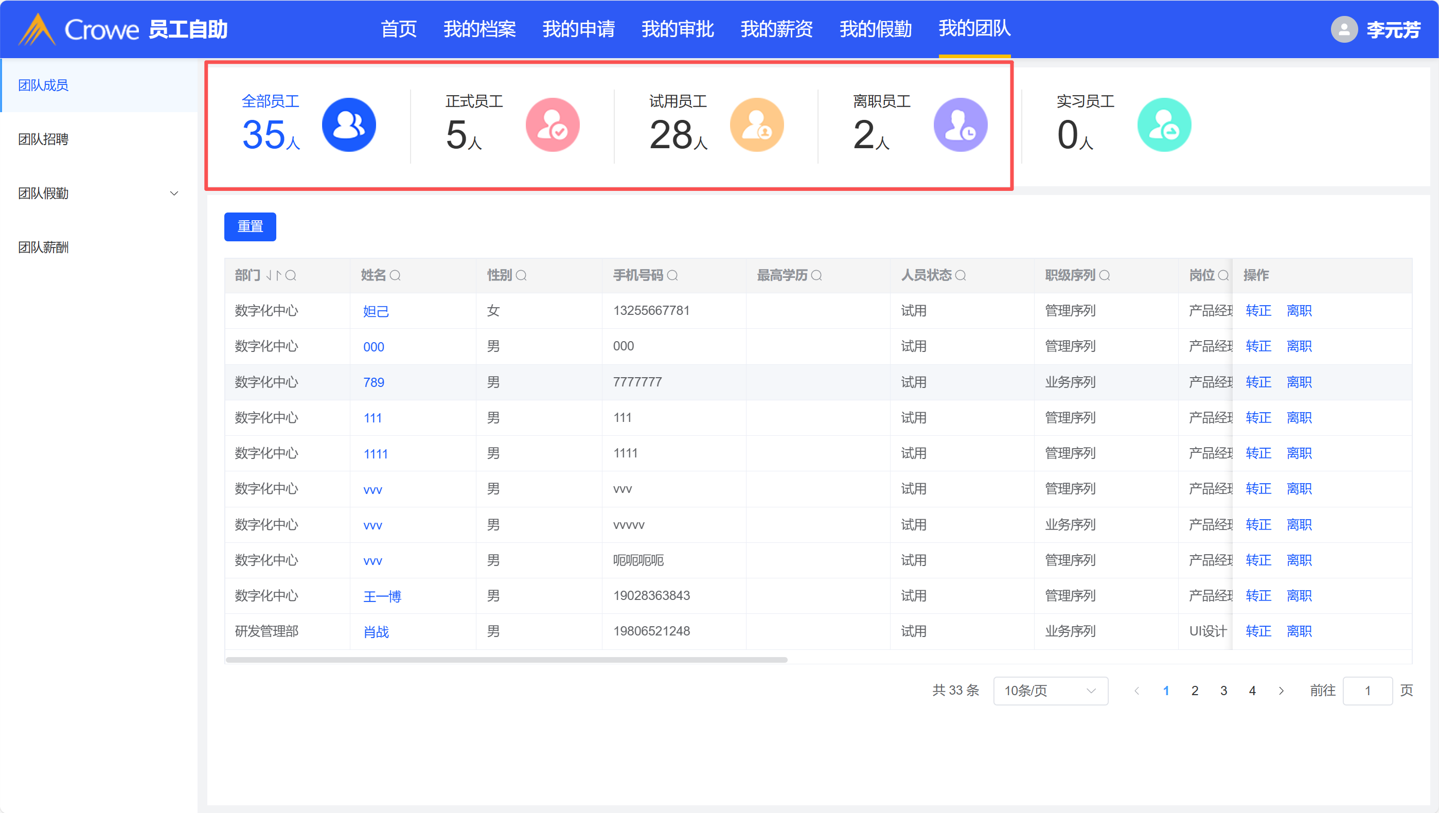 全部员工数据对应不上,目前权限没做好我的团队应该显示所有员工数据