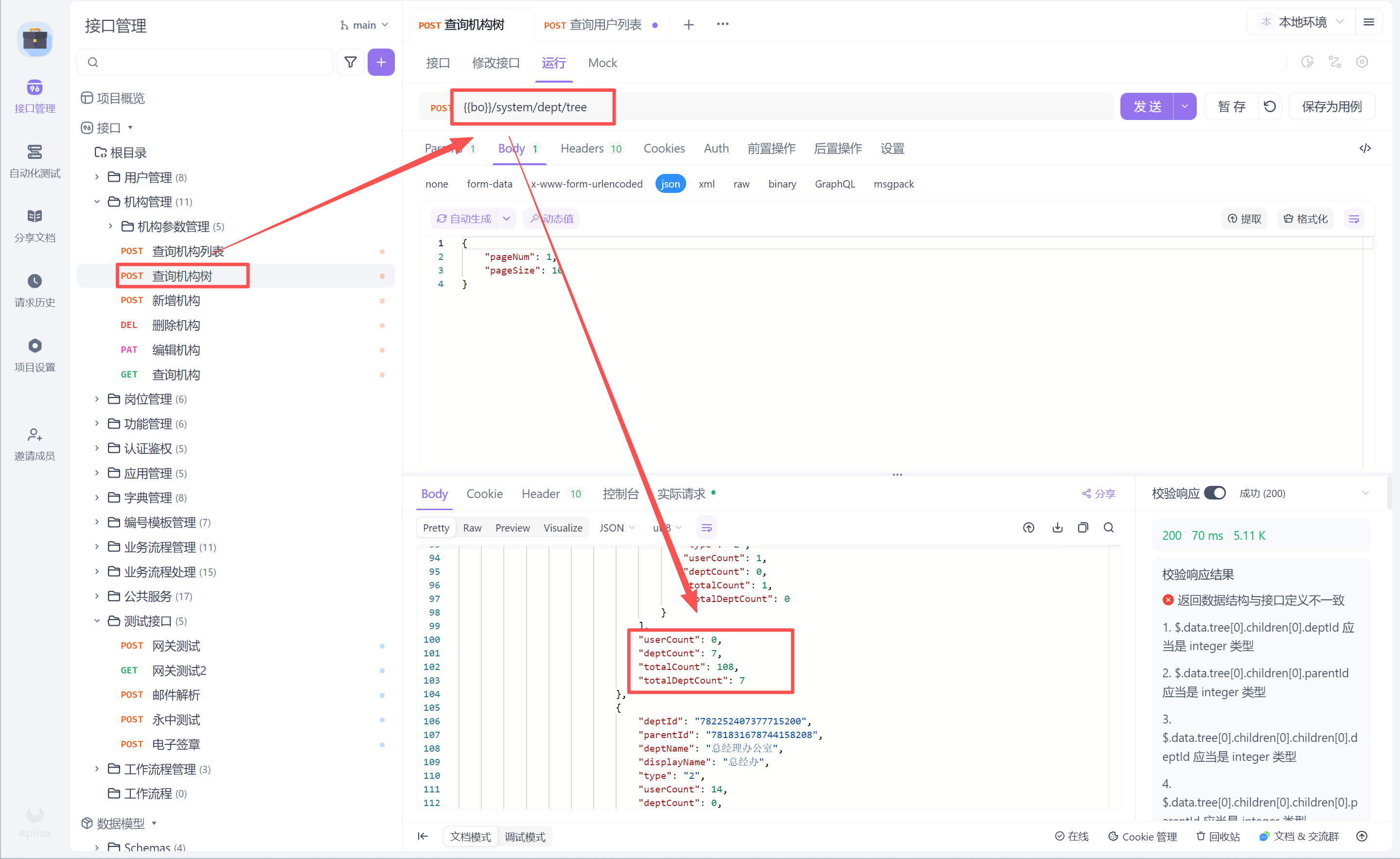 使用/system/user/tree 接口,deptCnt(下辖部门数),cnt(下辖人数)