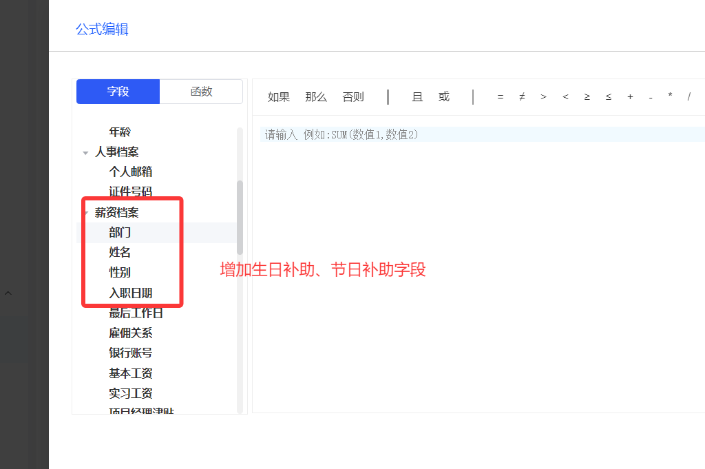 薪资项目--公式编辑器,增加生日补助、节日补助字段