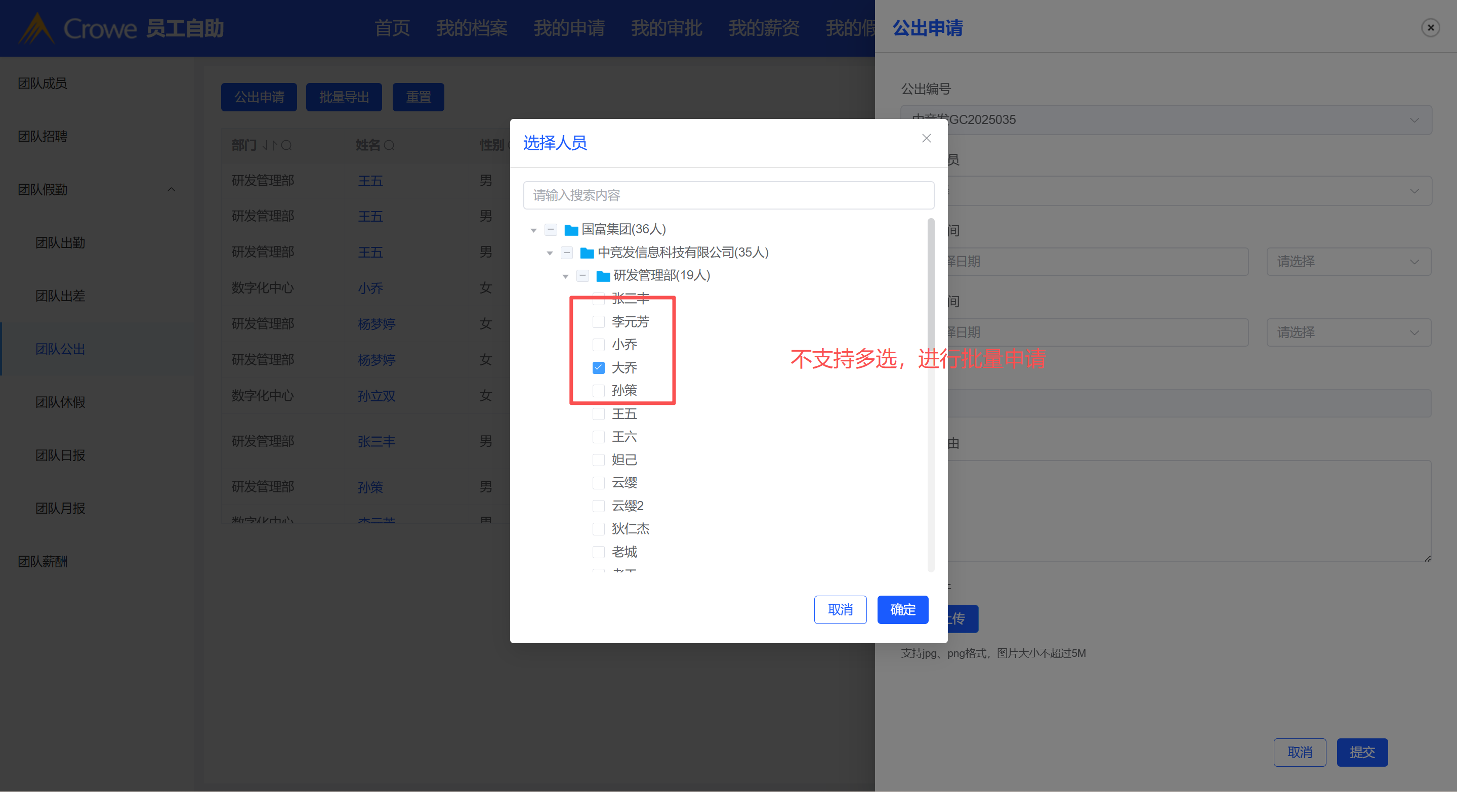 无法多选人员进行团队批量操作