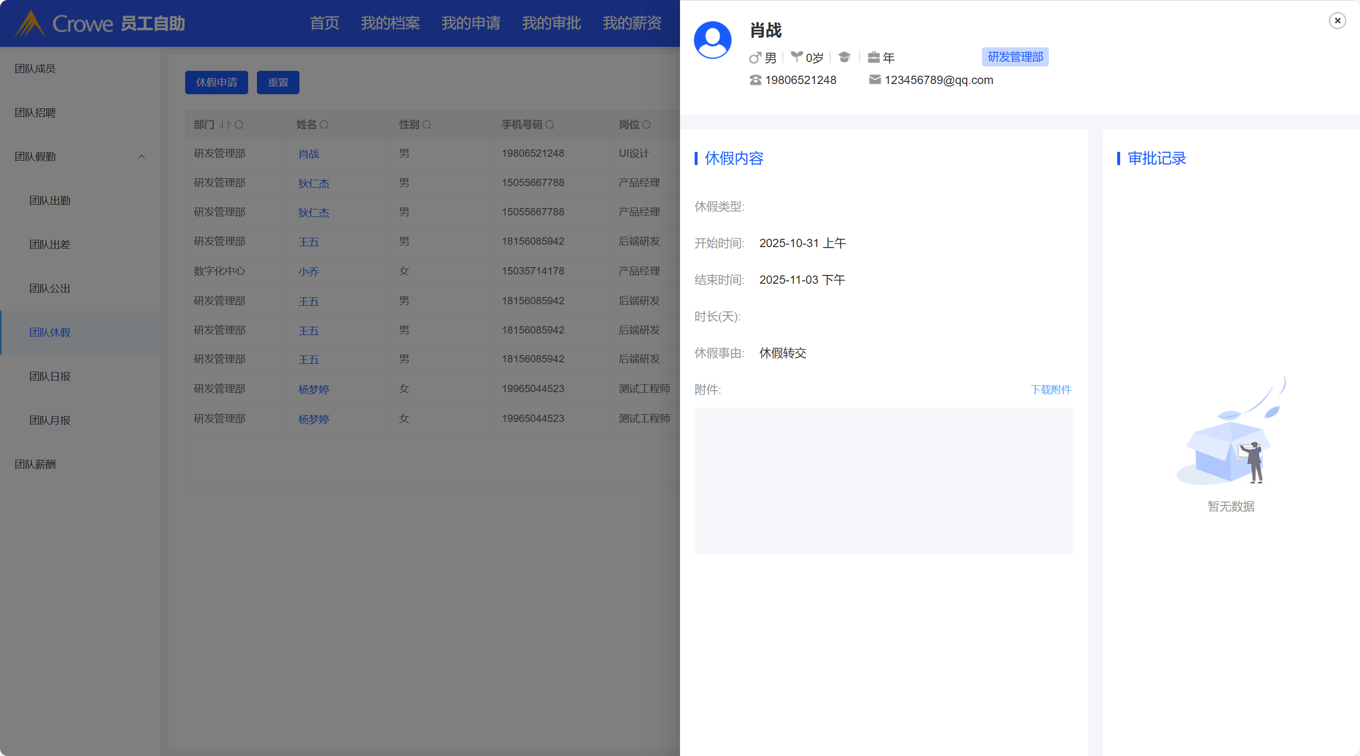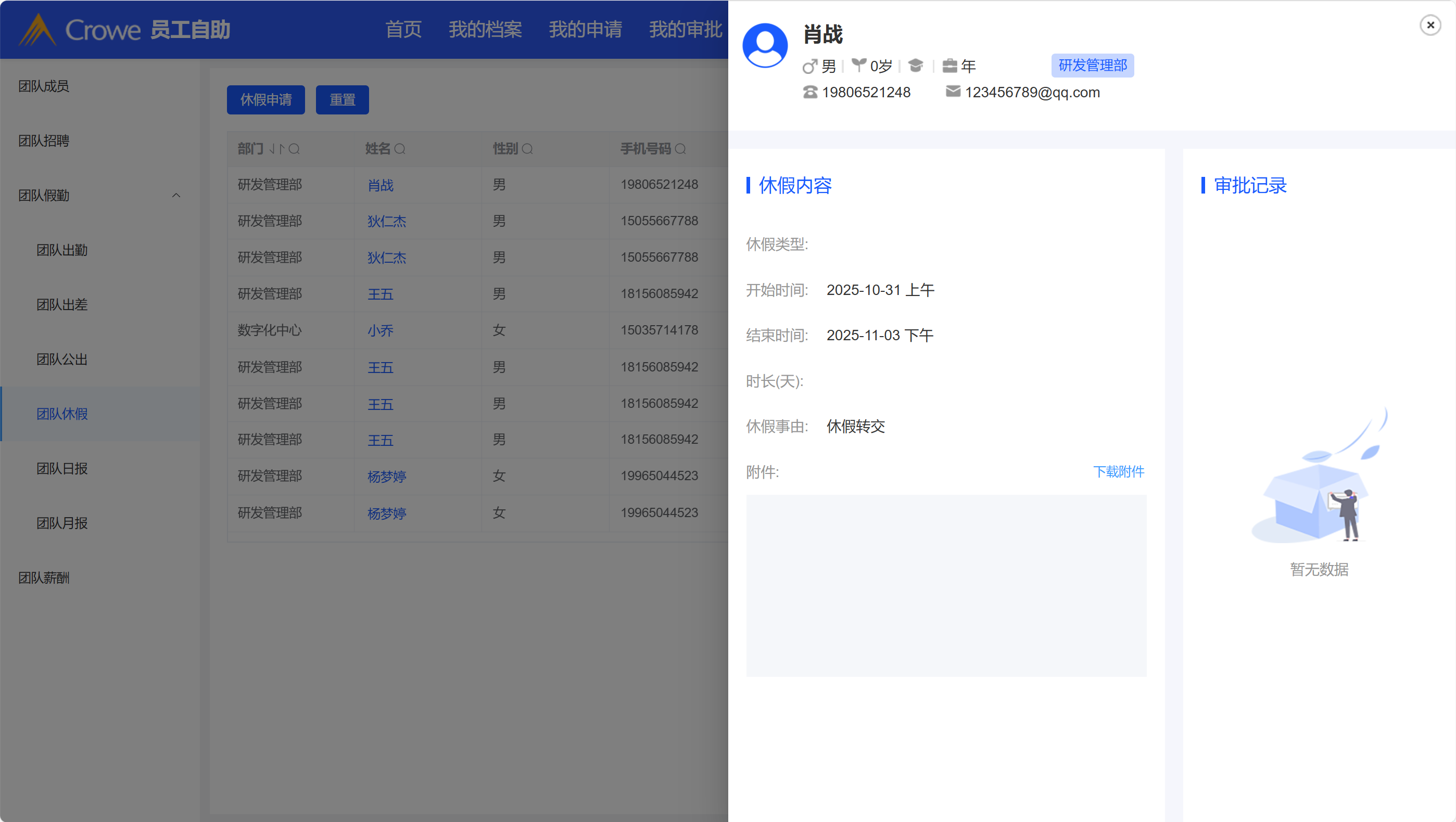 团队申请休假数据未回显在申请表单和团队休假列表中
