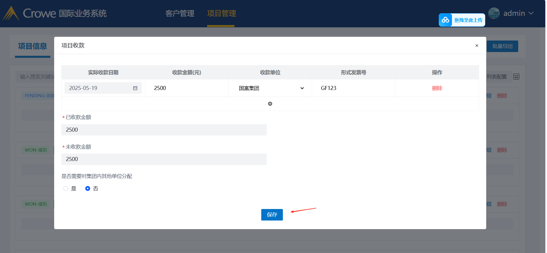 期望结果:列表页可以对项目进行转单操作;