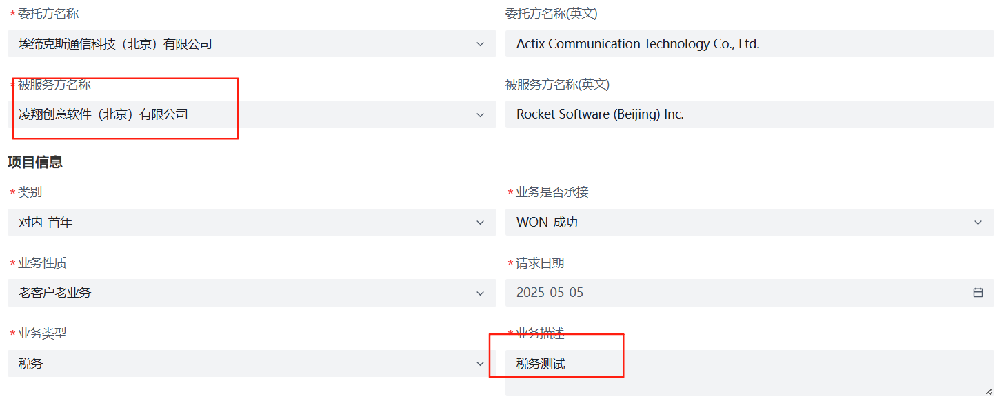 被服务单位名称和业务描述赋值错误
