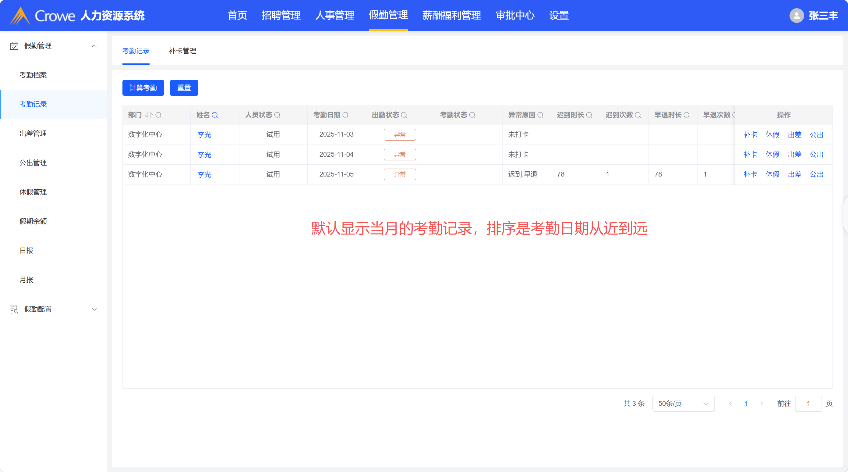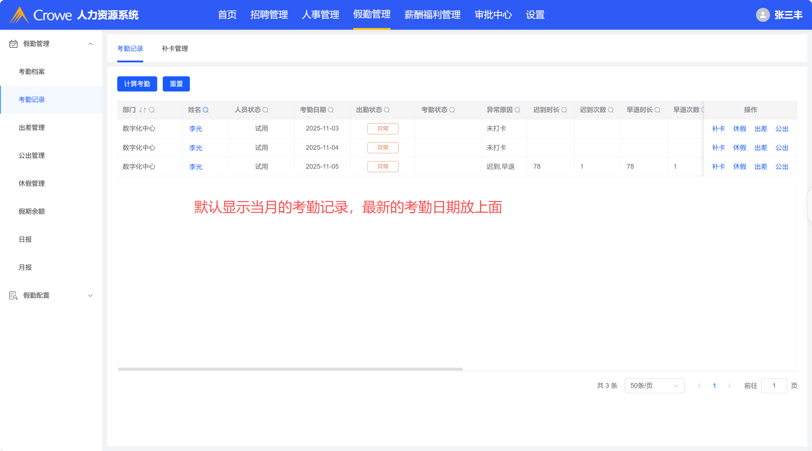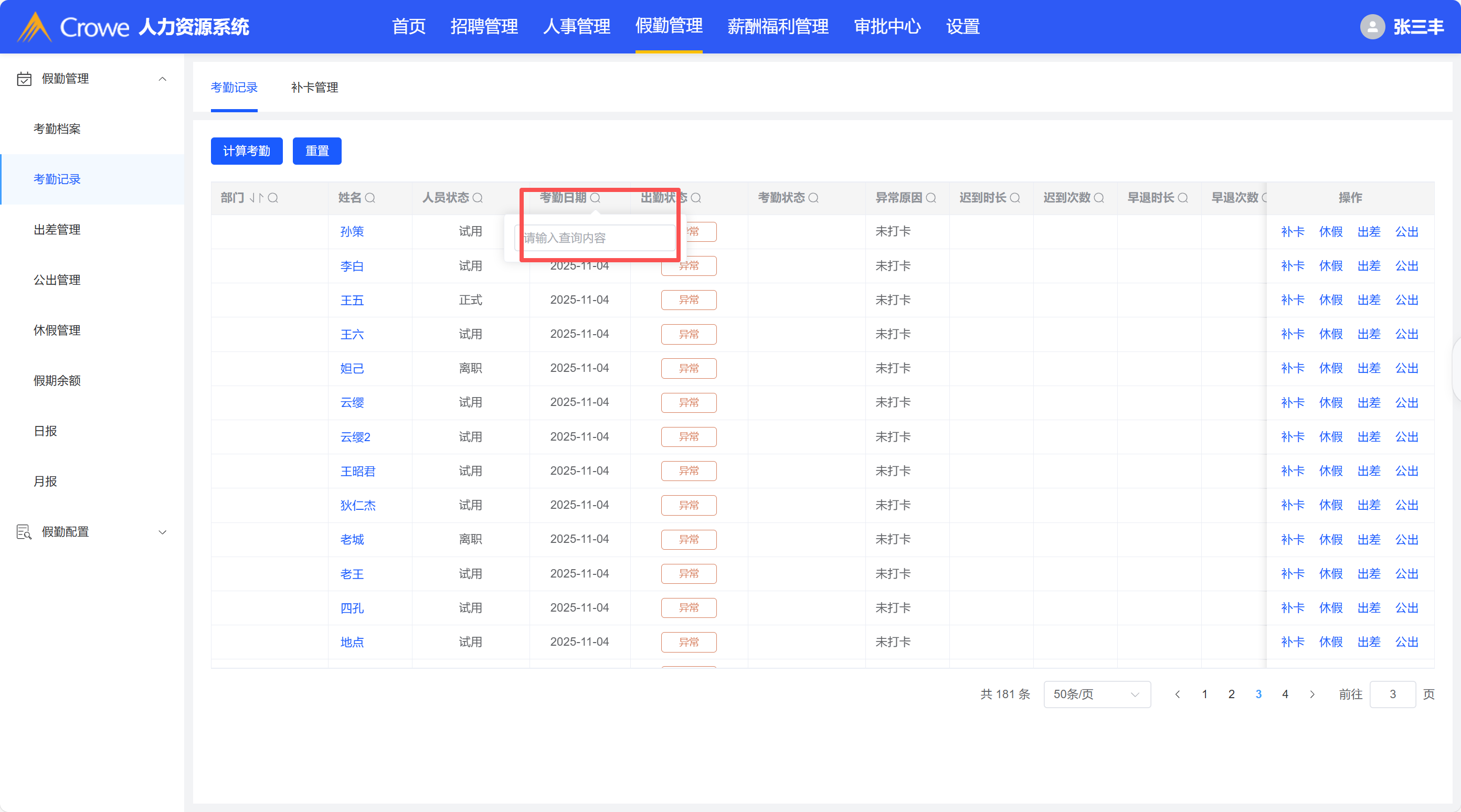 考勤记录-日期查询用日期选择框,最新的考勤日期放在最上面